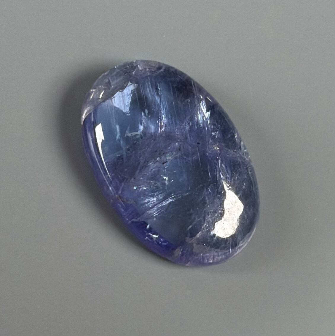 このルースは、内部にクラックが見られるものの、光を受けると鮮やかに輝く、美しい青紫の色合いが魅力です。
