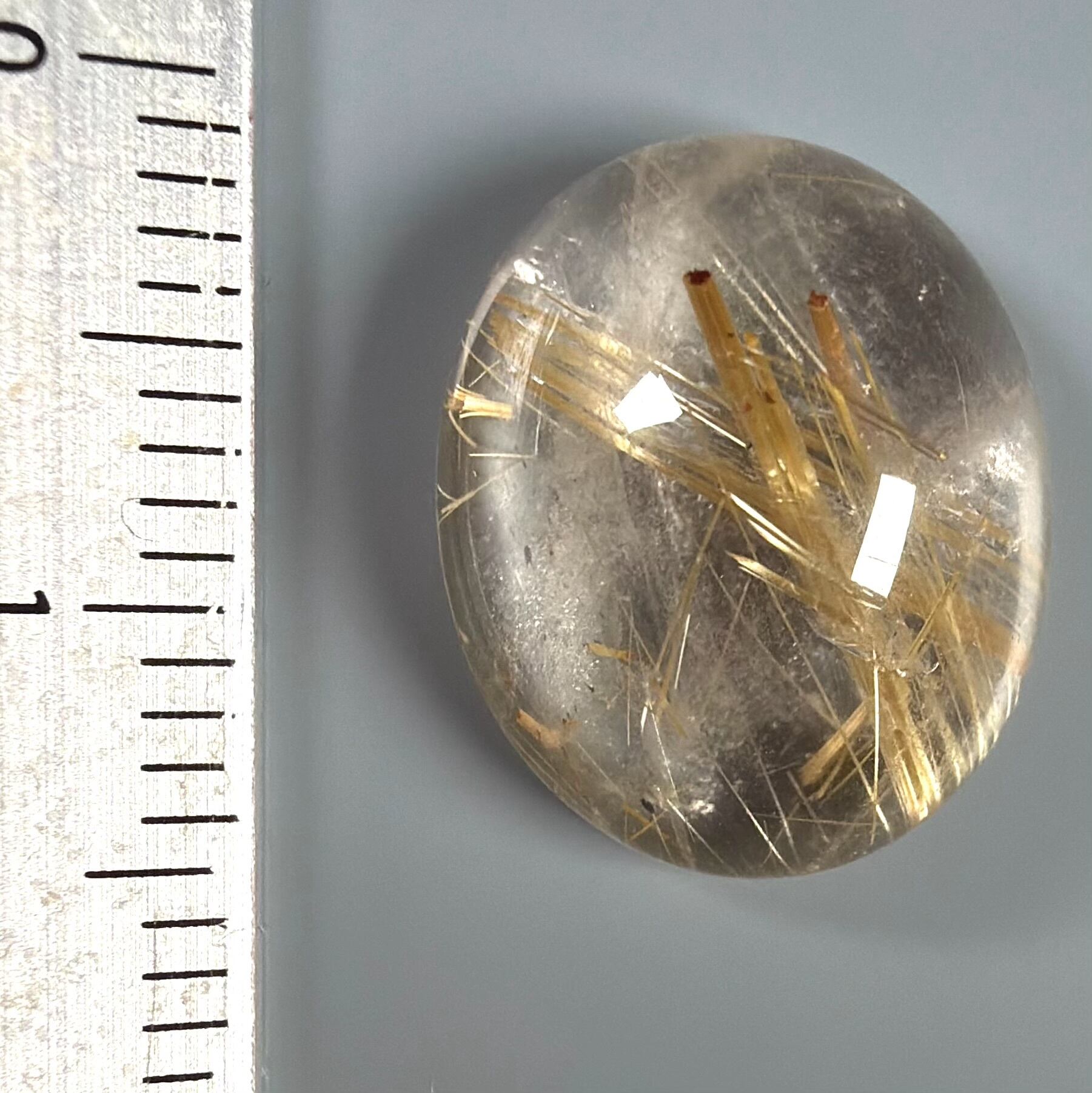 水晶部の透明度はまずまずのルチルクォーツ ルースです。