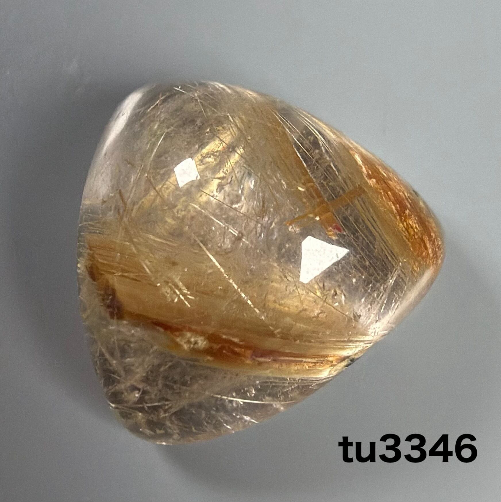 水晶部の有無のように濁りのあるルチルクォーツ ルースです。