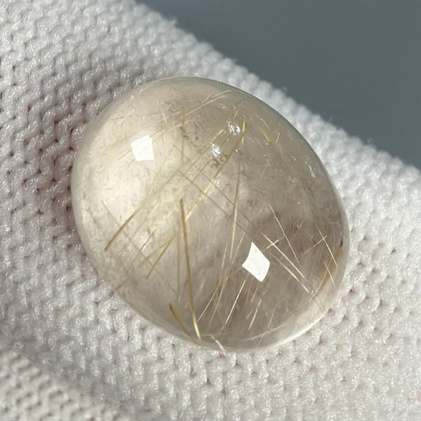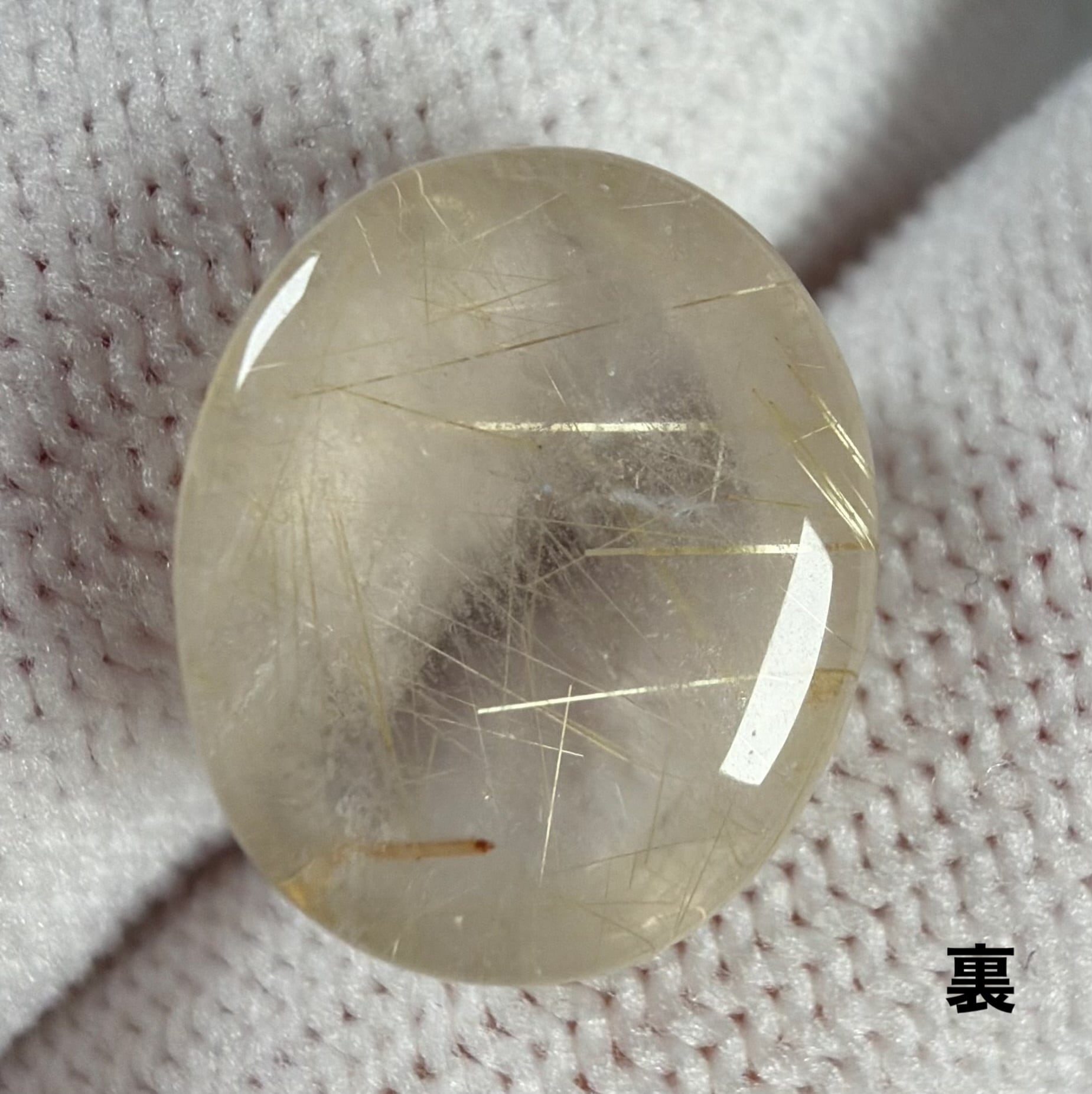 水晶部の有無のように濁りのあるルチルクォーツ ルースです。
