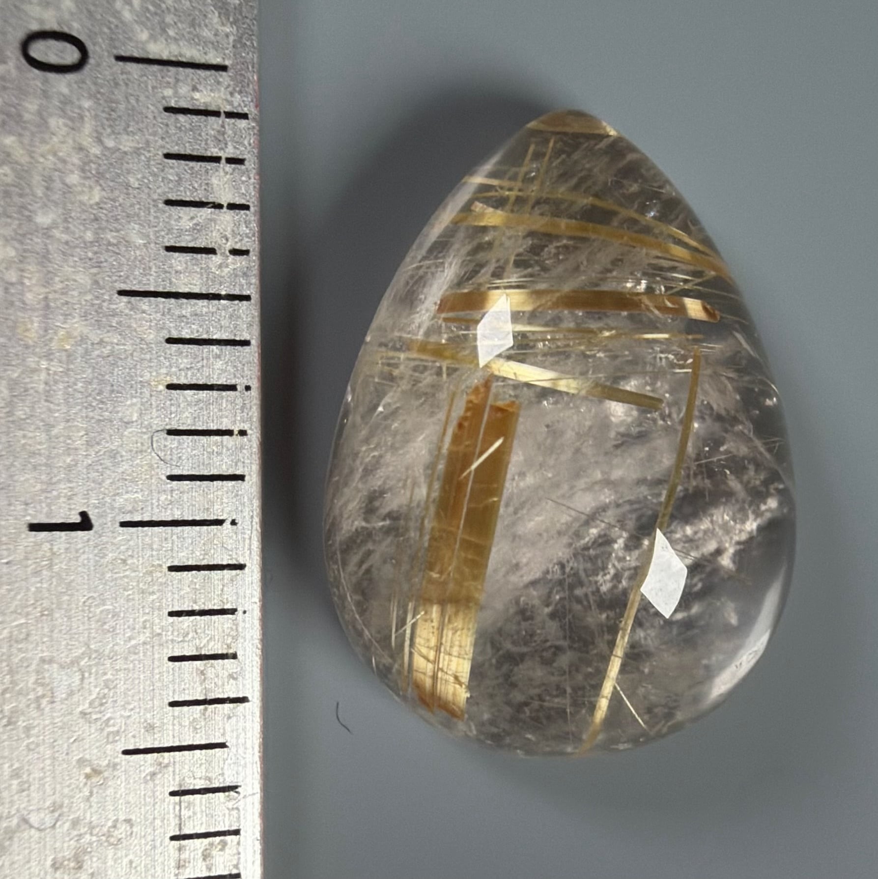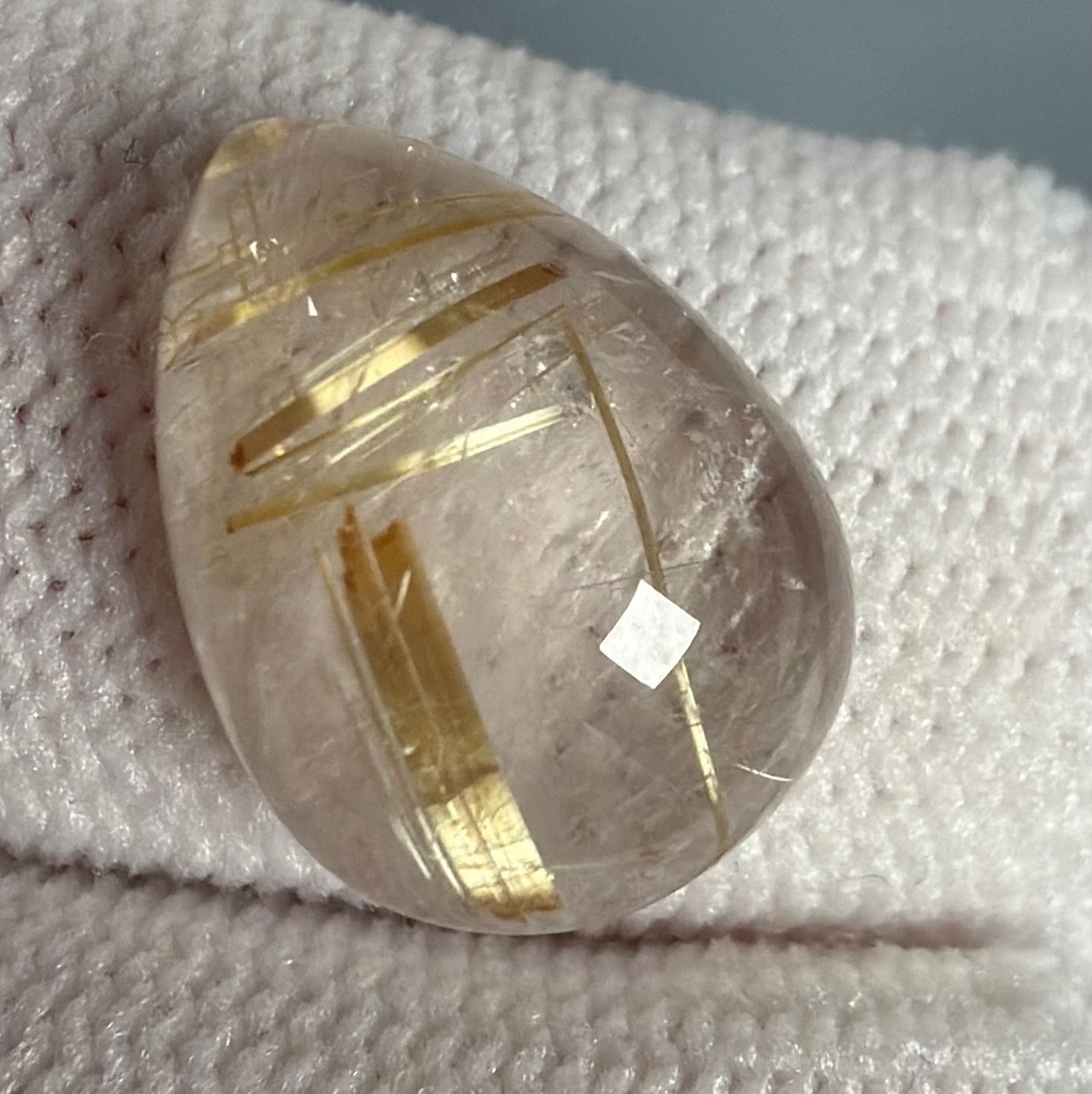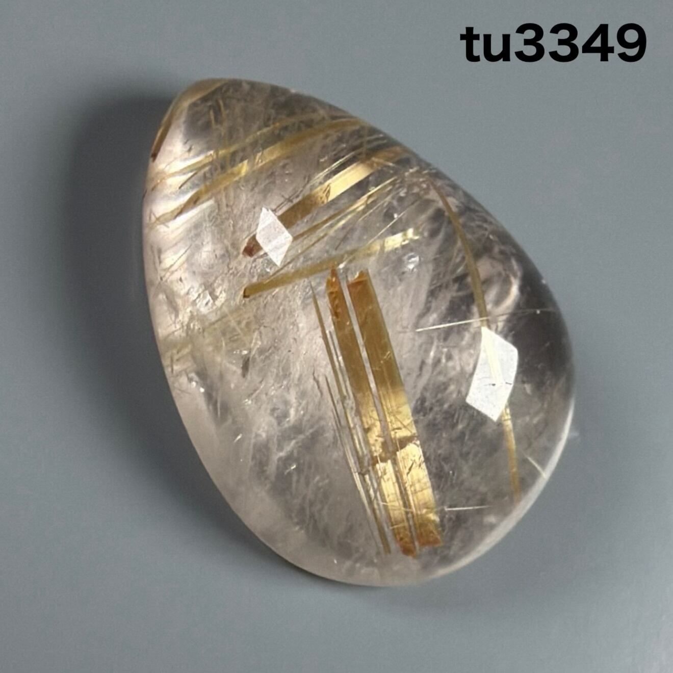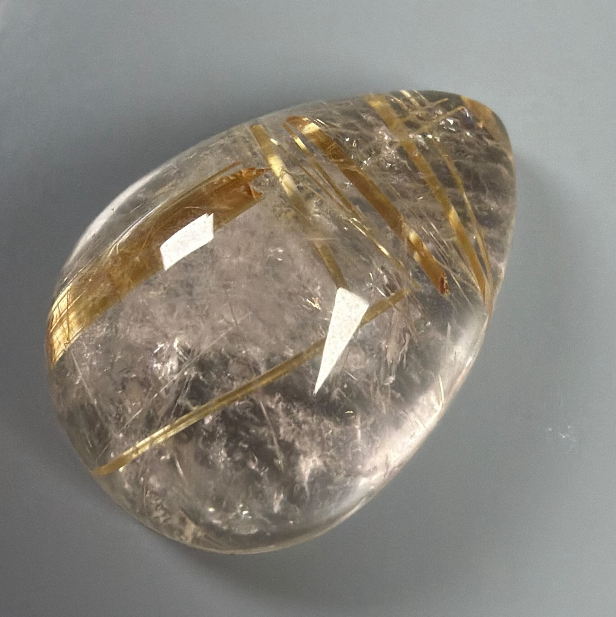 水晶部の有無のように濁りのあるルチルクォーツ ルースです。