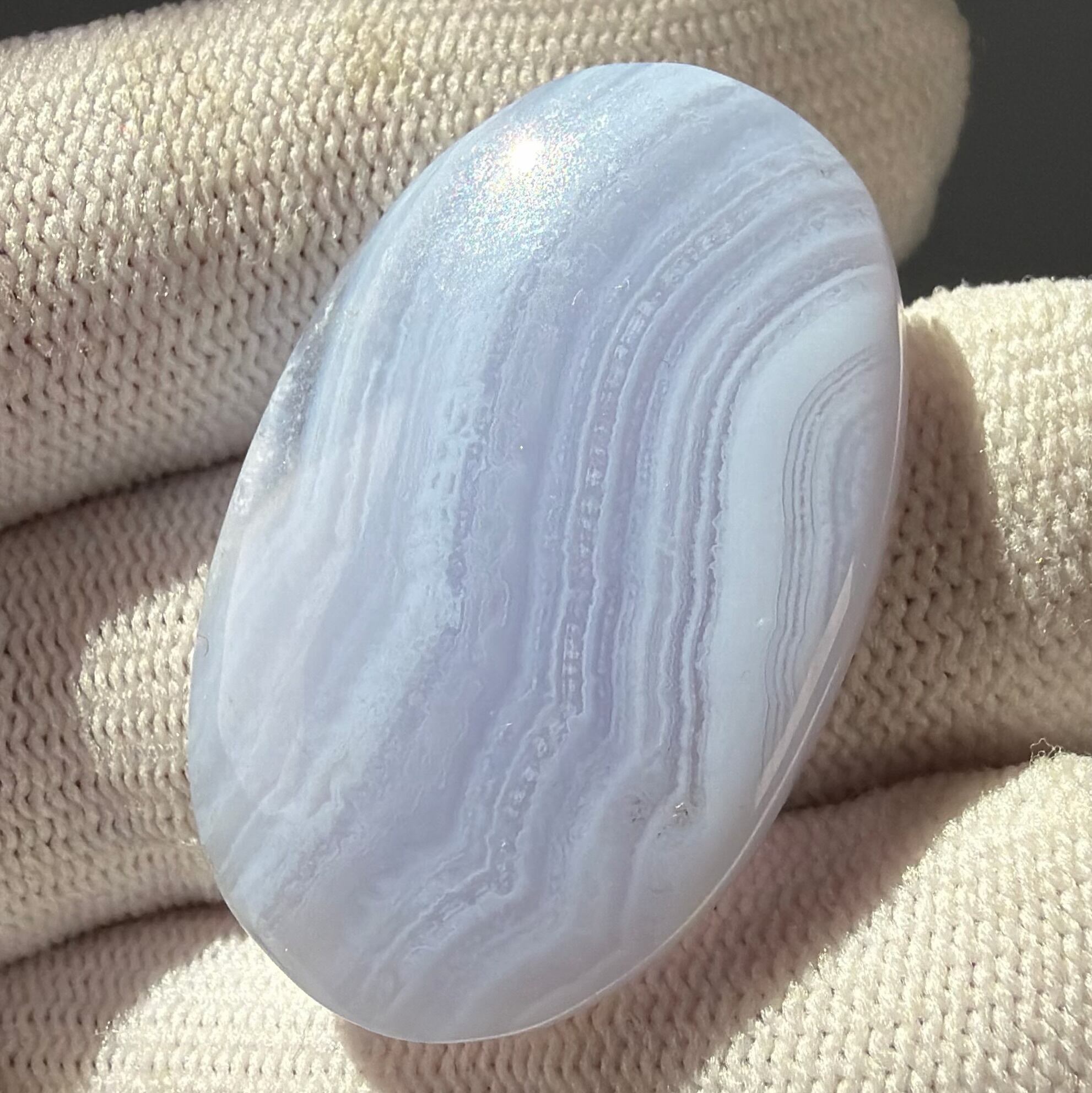 優しい波紋のようなブルーレースアゲートを手にしてください。