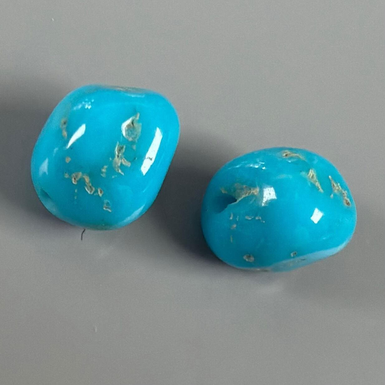 閉山の為、もう出回らないスリーピングビューティー ターコイズのタンブルビーズ2個です。