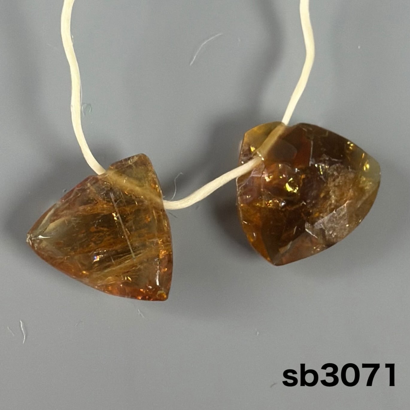 ブラウントルマリン トライアングル型 宝飾カットビーズ 2P sb3071