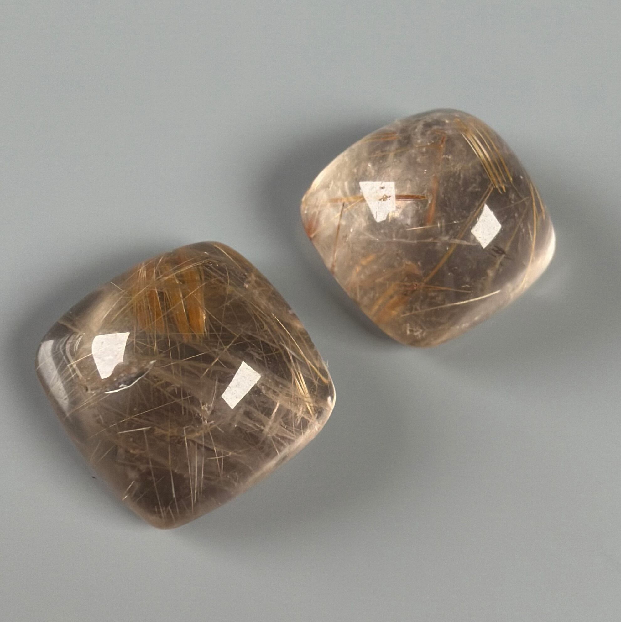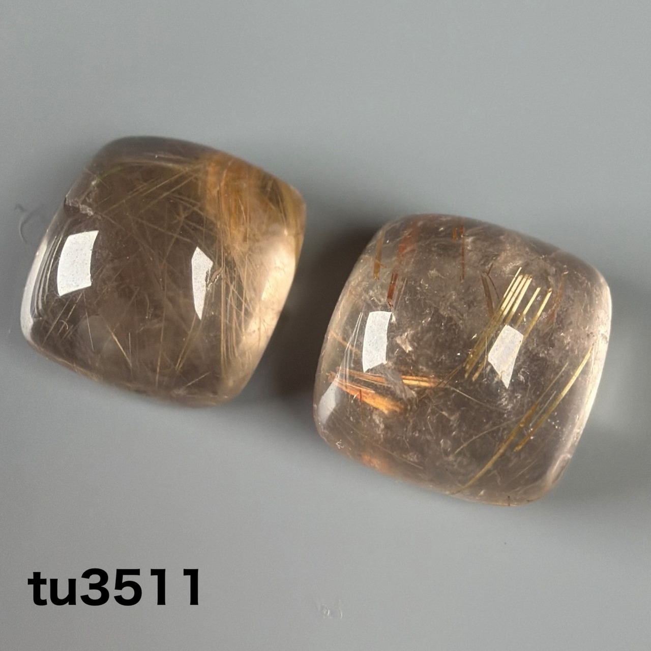 スモーキー ルチルクォーツ 四角いルース 2個 Tu3511