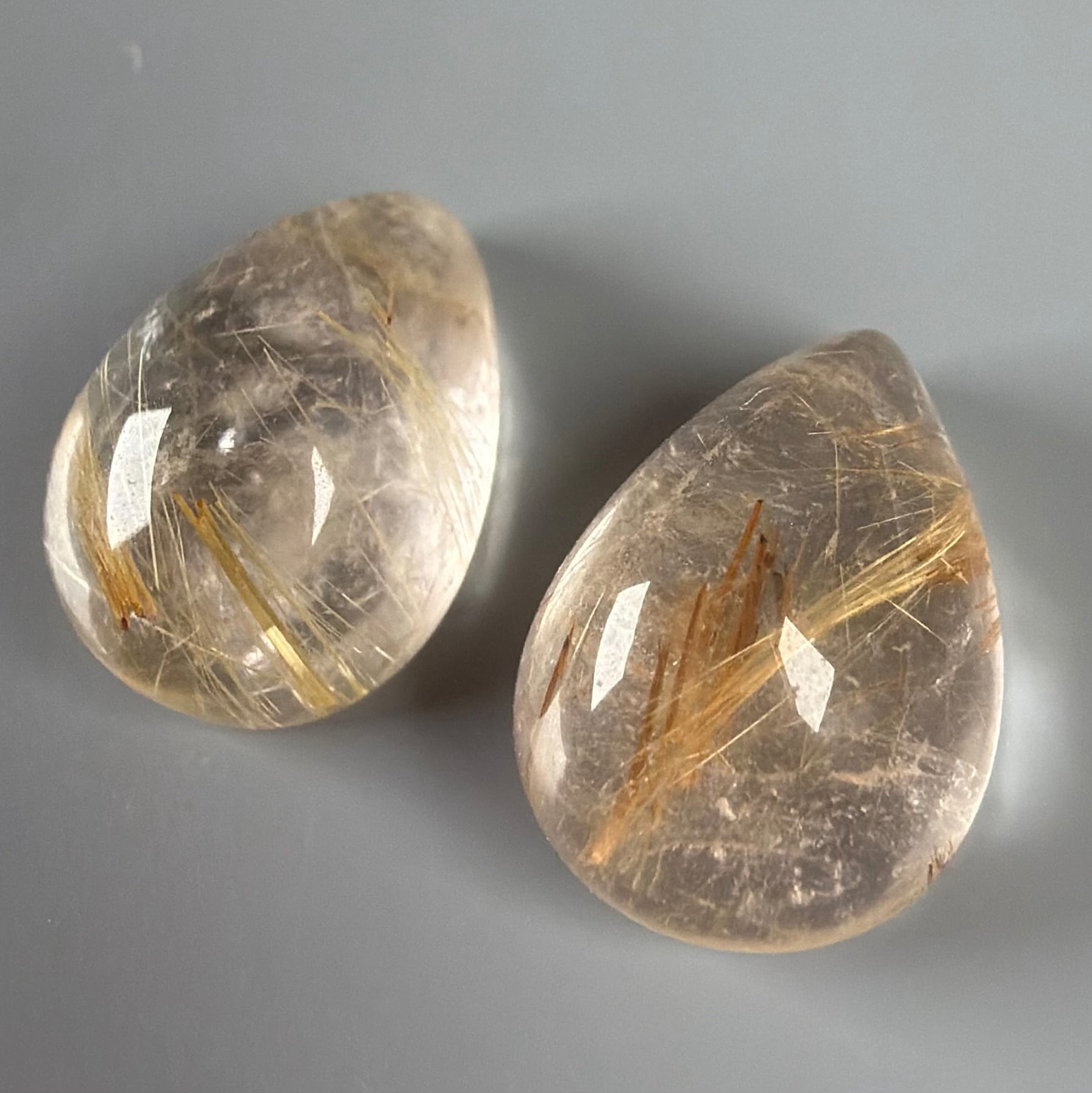 小さなティアドロップ型 ルチルクォーツ ペアです。