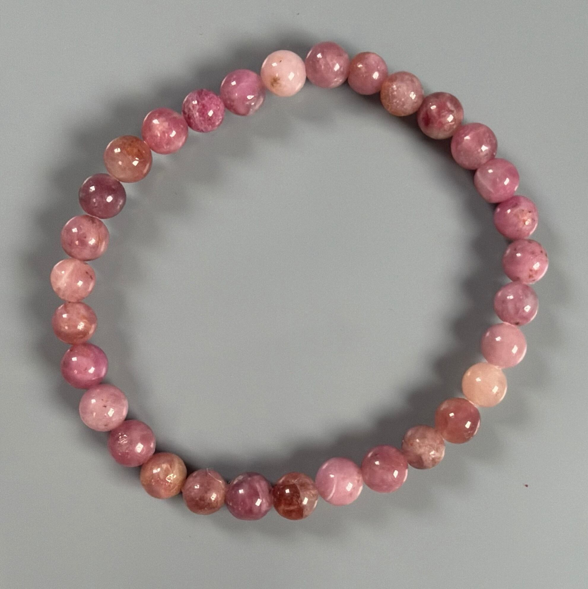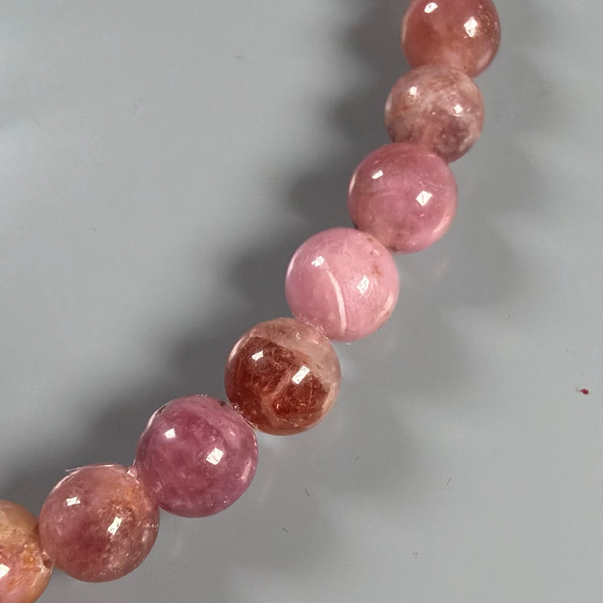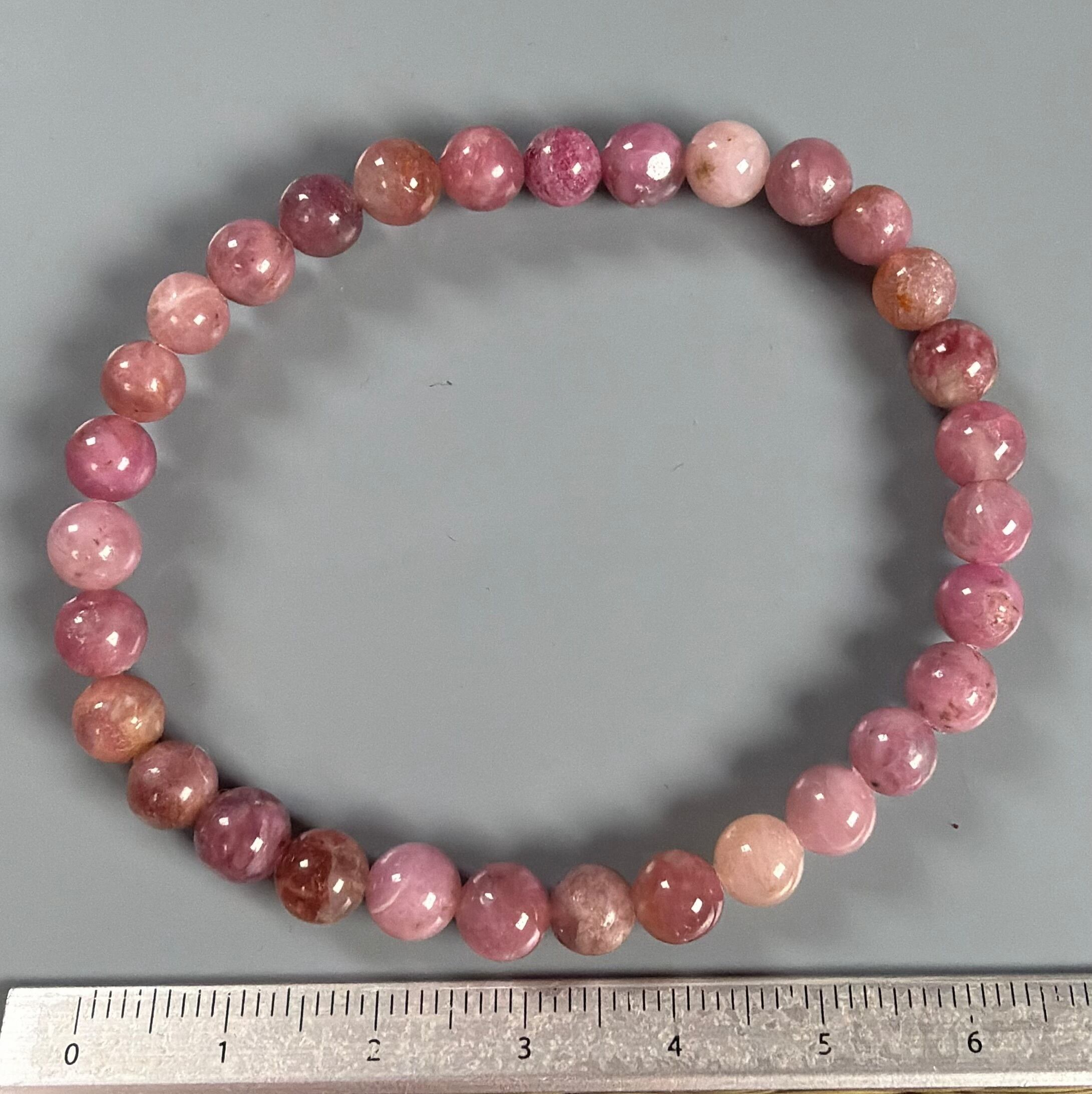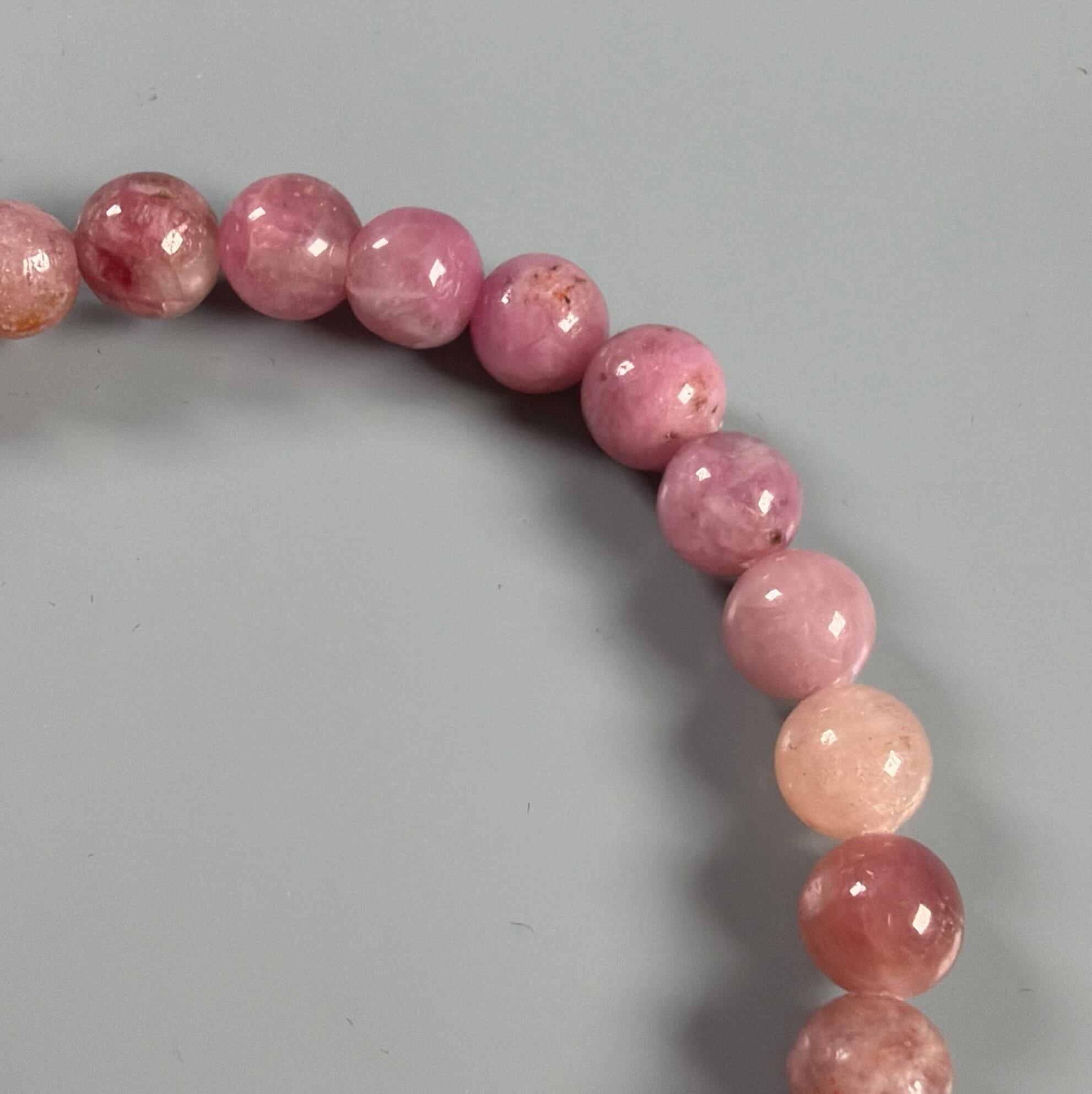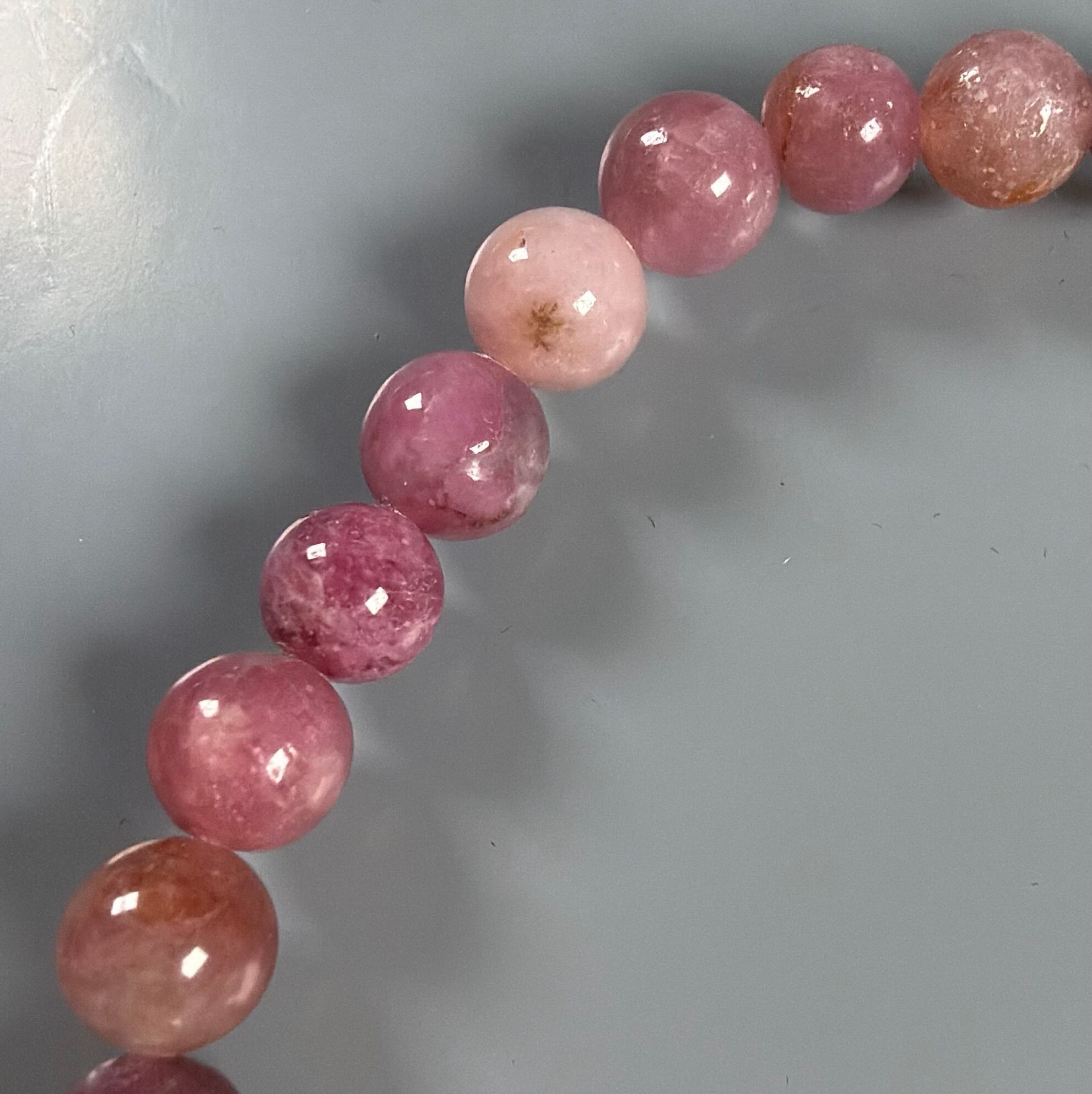 天然ピンクトルマリン 6ミリビーズ ブレスレットです。