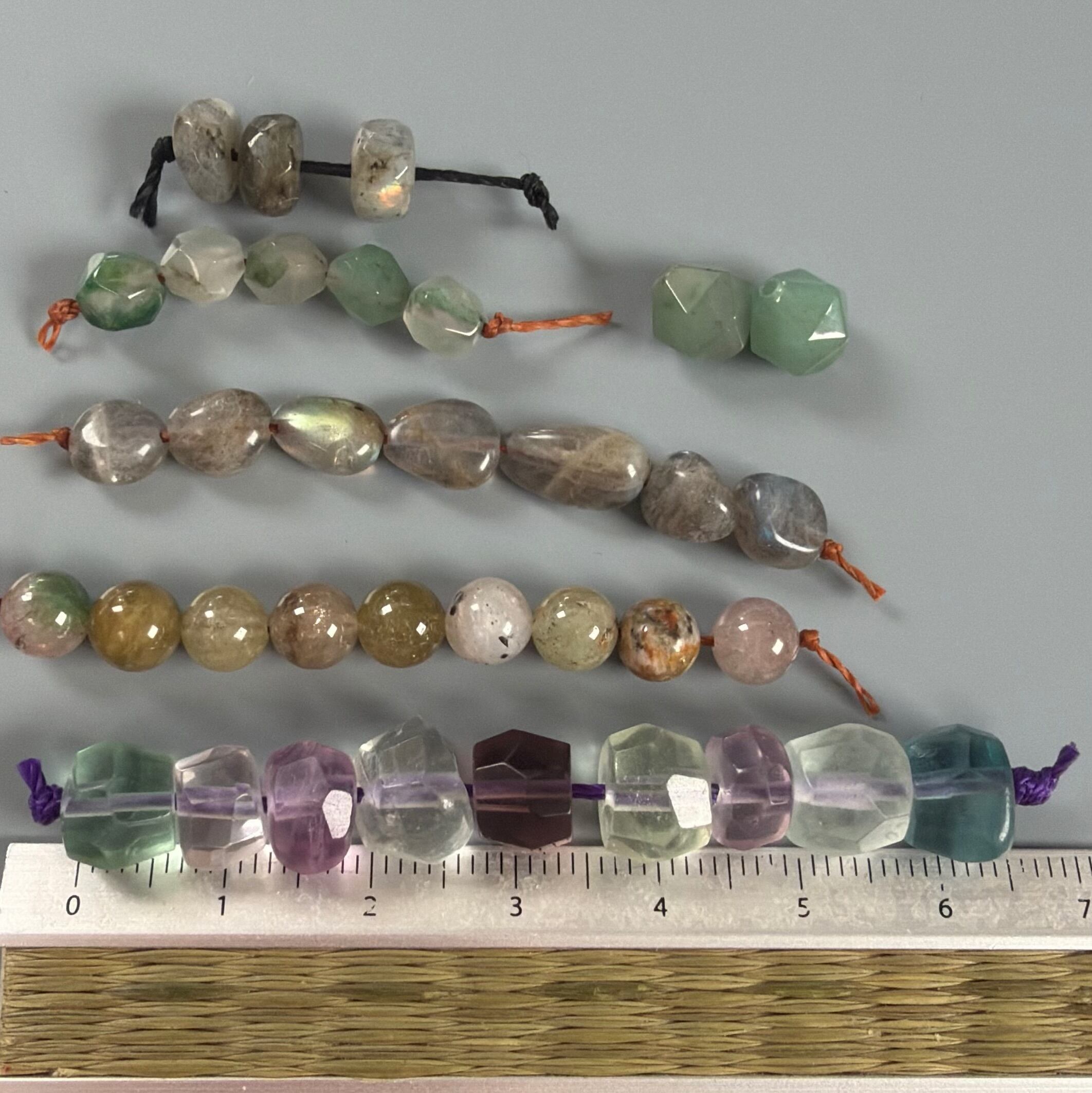 ラブラドライト タンブル7個、ロンデルカットビーズ3個。