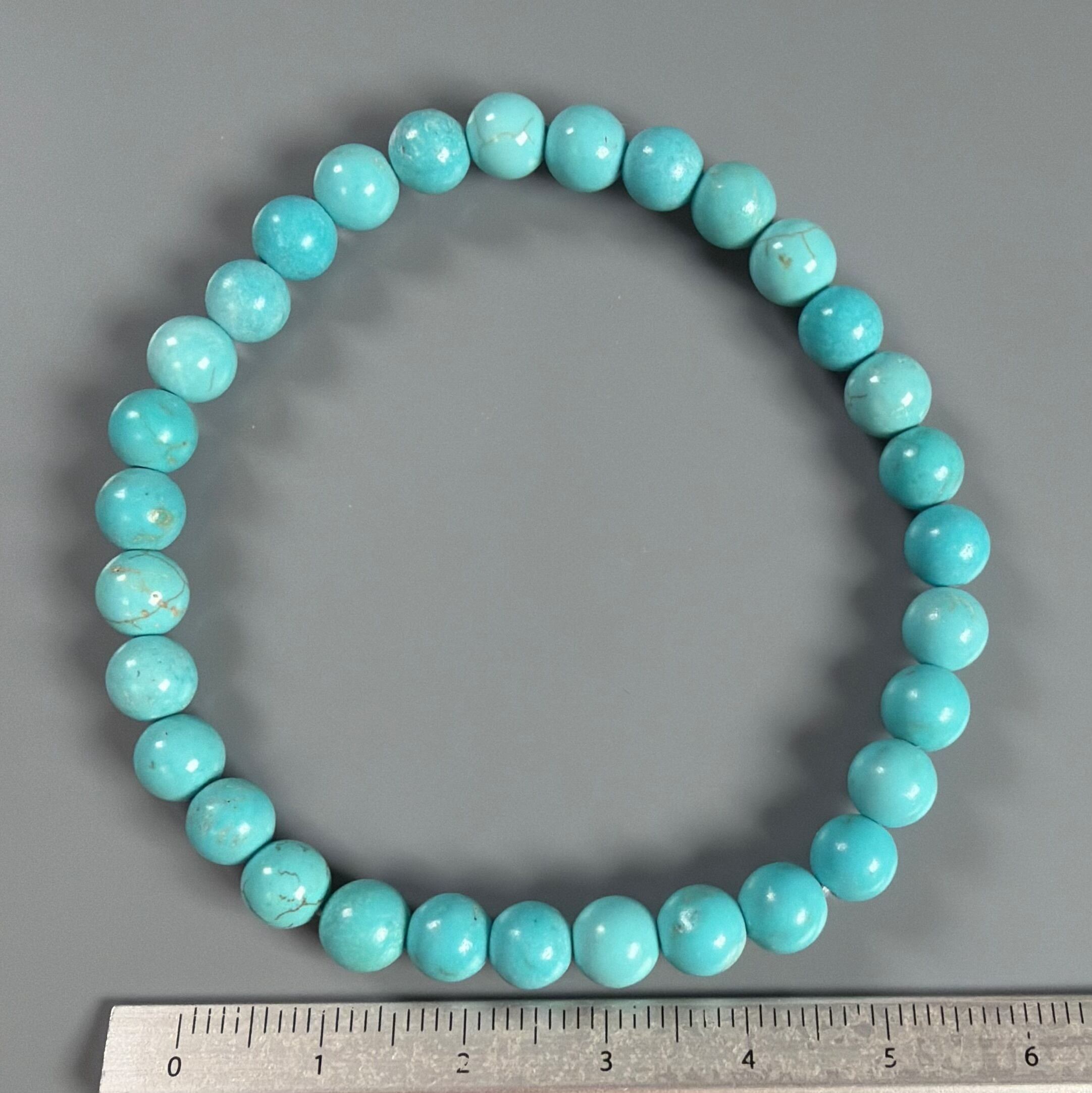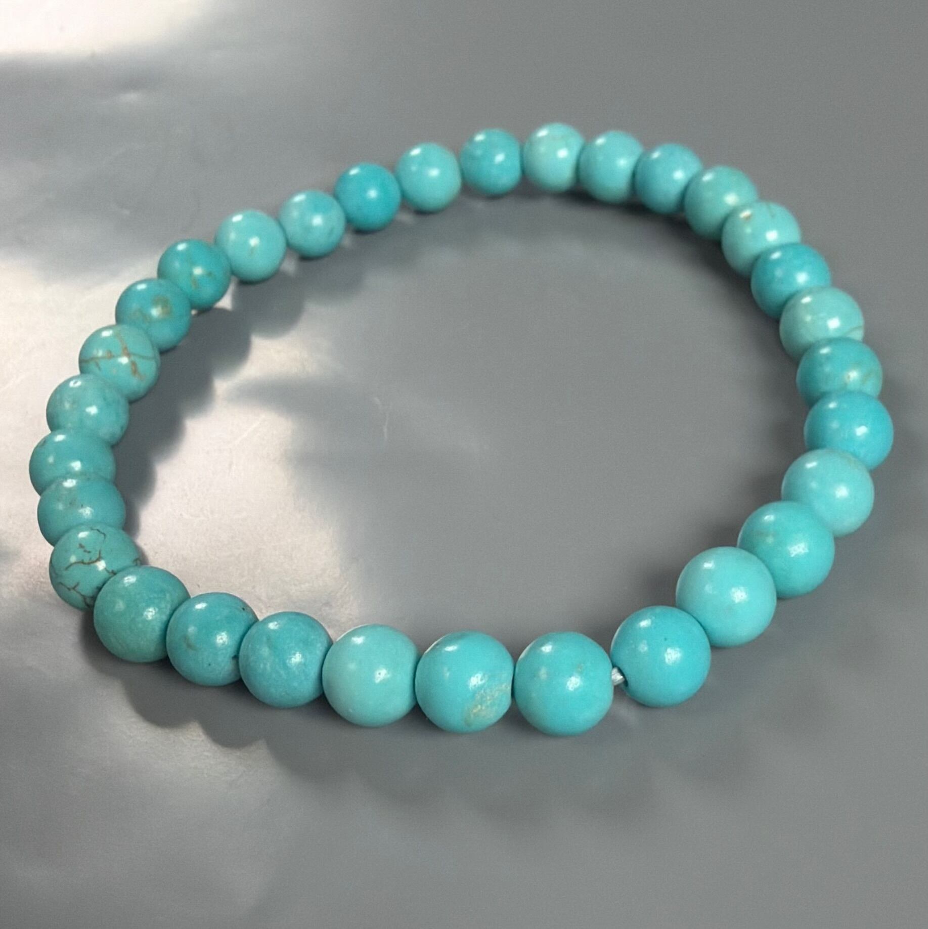 天然のターコイズを染めた6ミリビーズのブレスレットです。