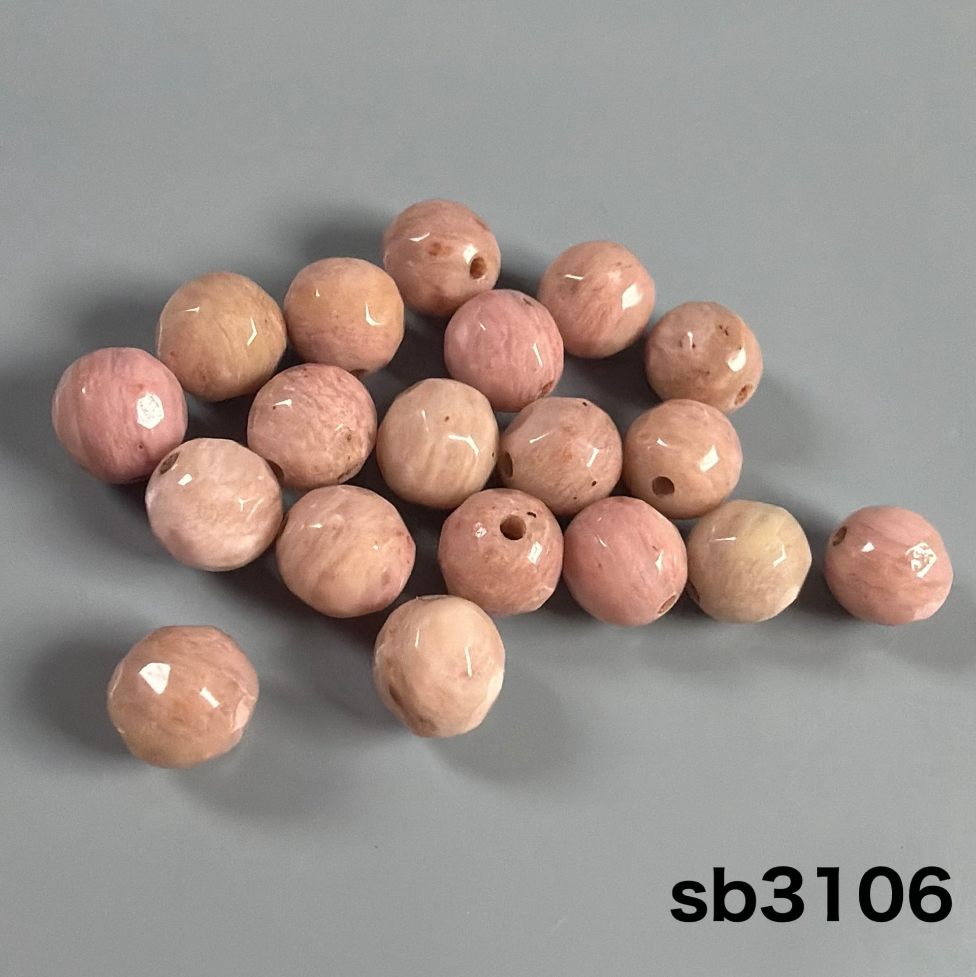 サーモンピンクのピーモンタイトシスト 6ミリカットビーズ 19個 sb3106