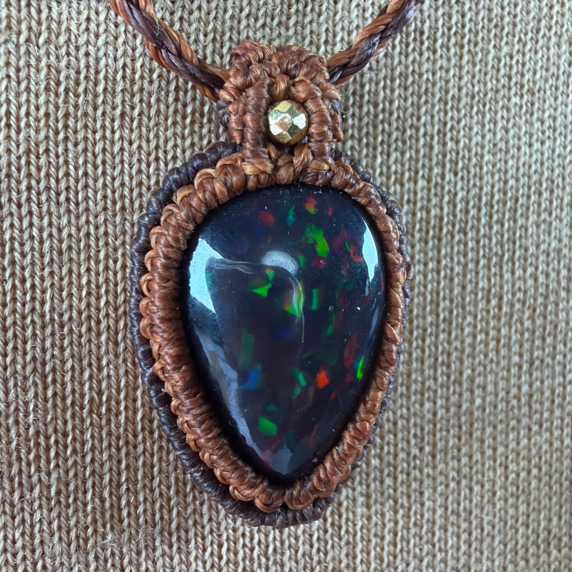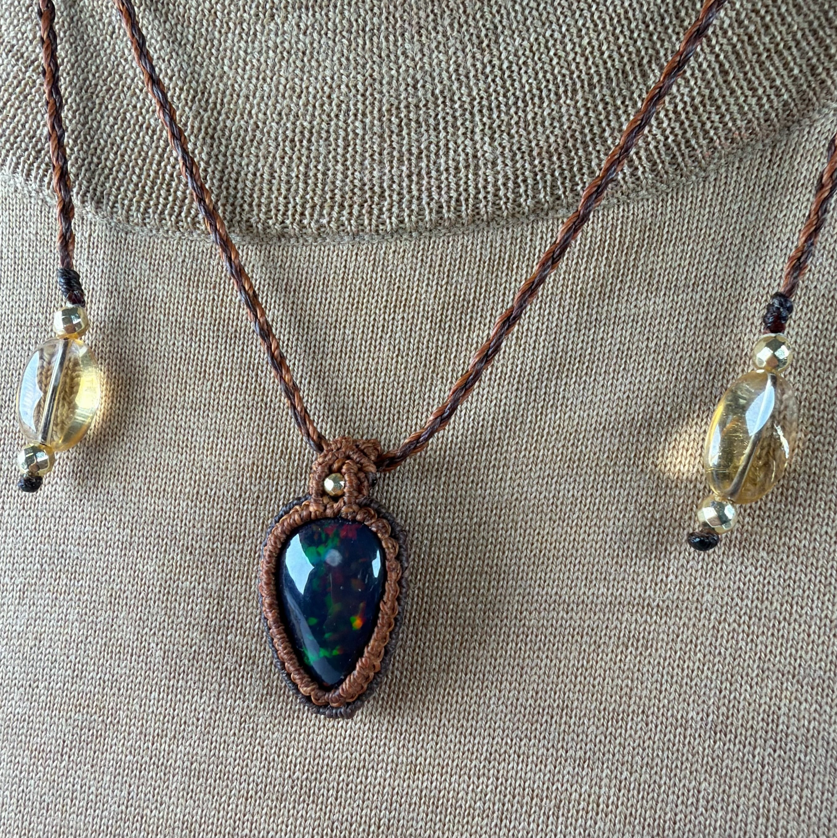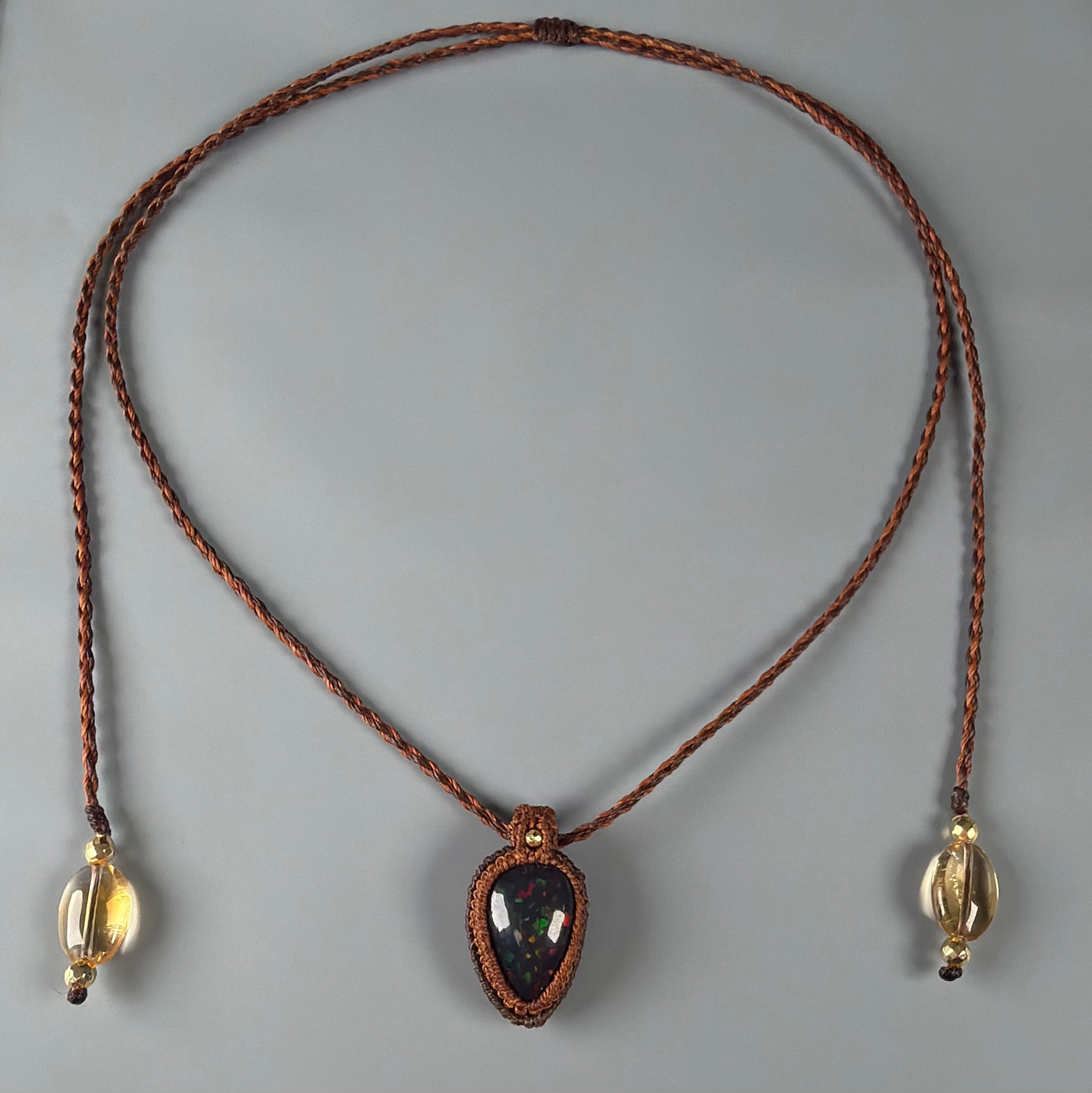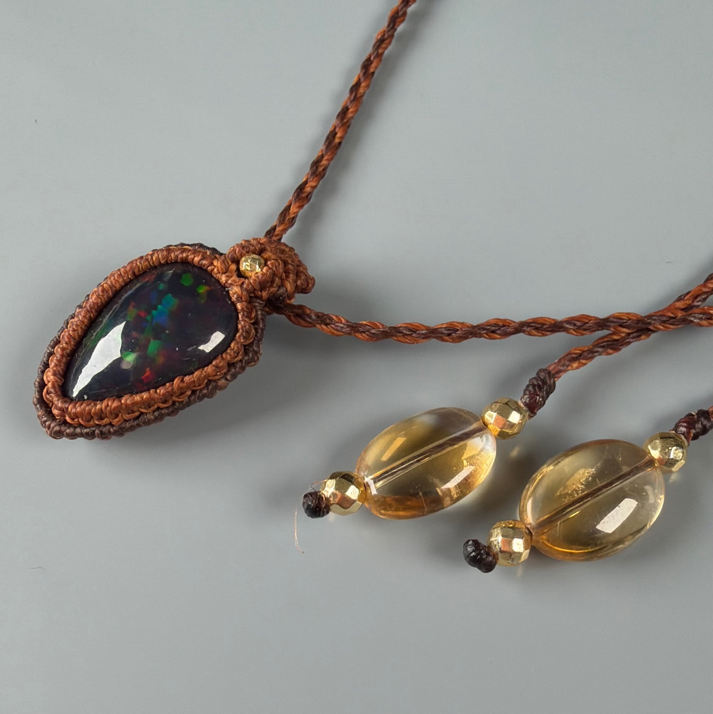 スモークヒーテッド処理 ブラックオパール マクラメネックレス ソウルフレンズ SF09