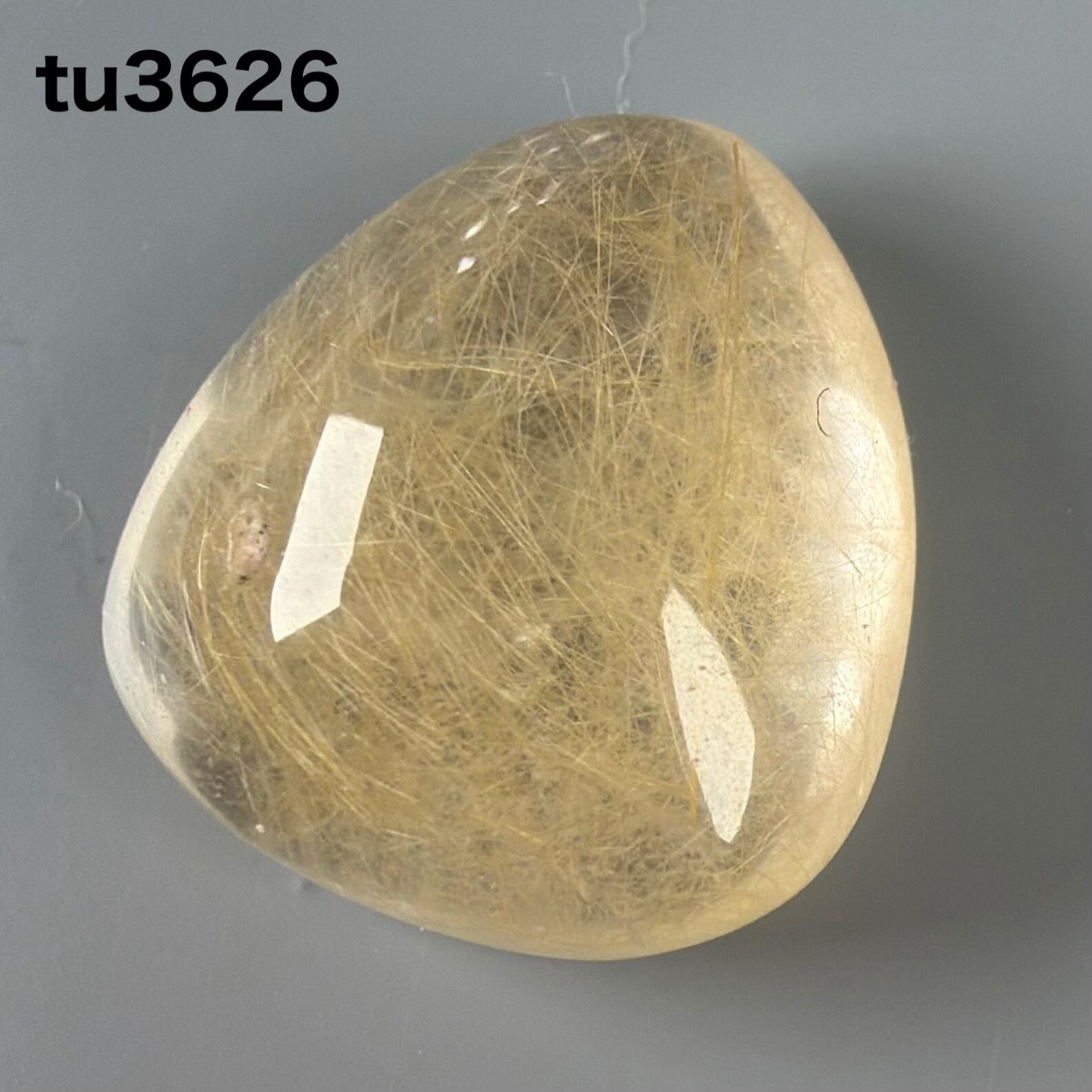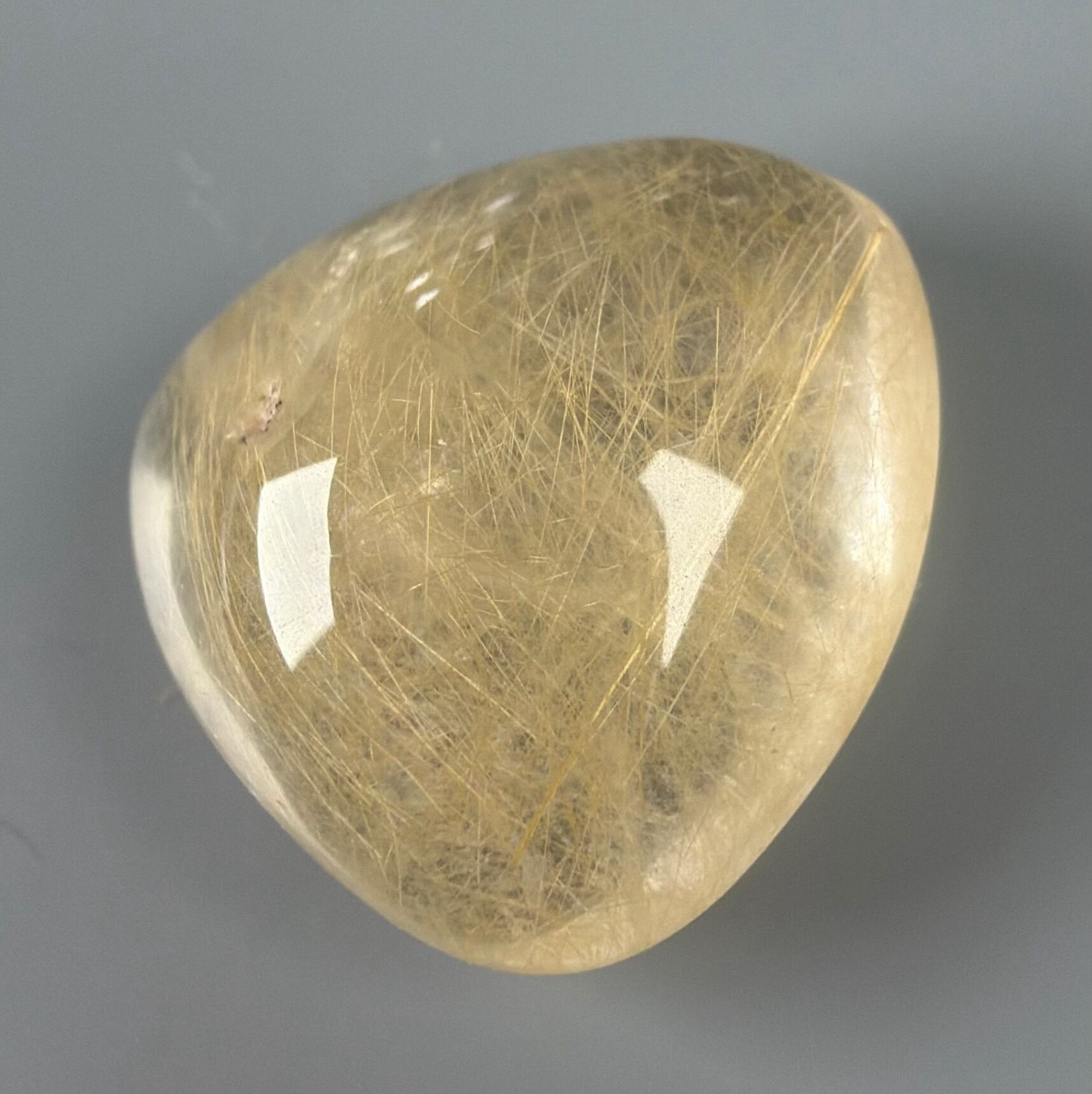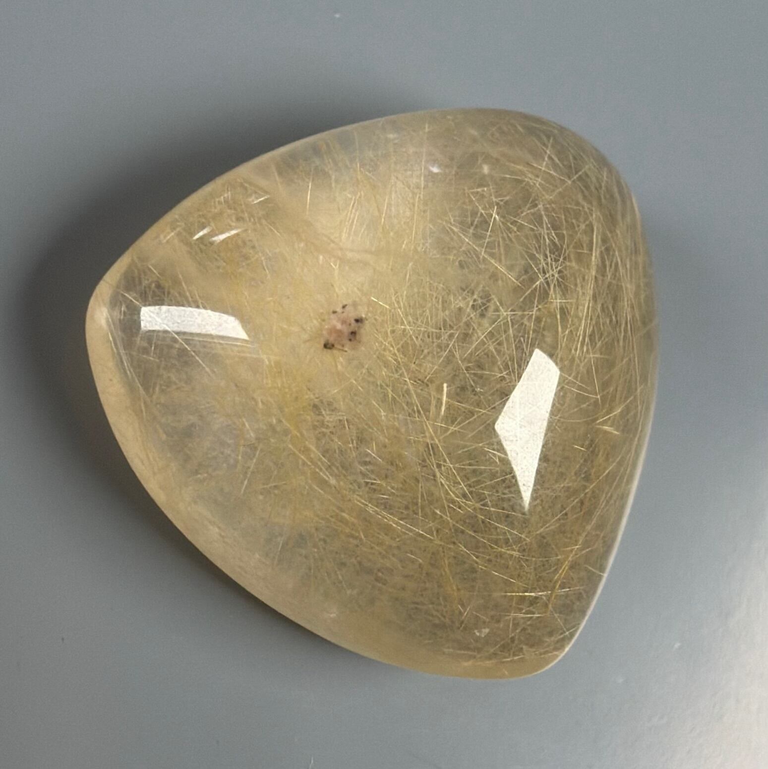 水晶部は濁りあり、細かな優しい針のルチルクォーツ ルースです。
