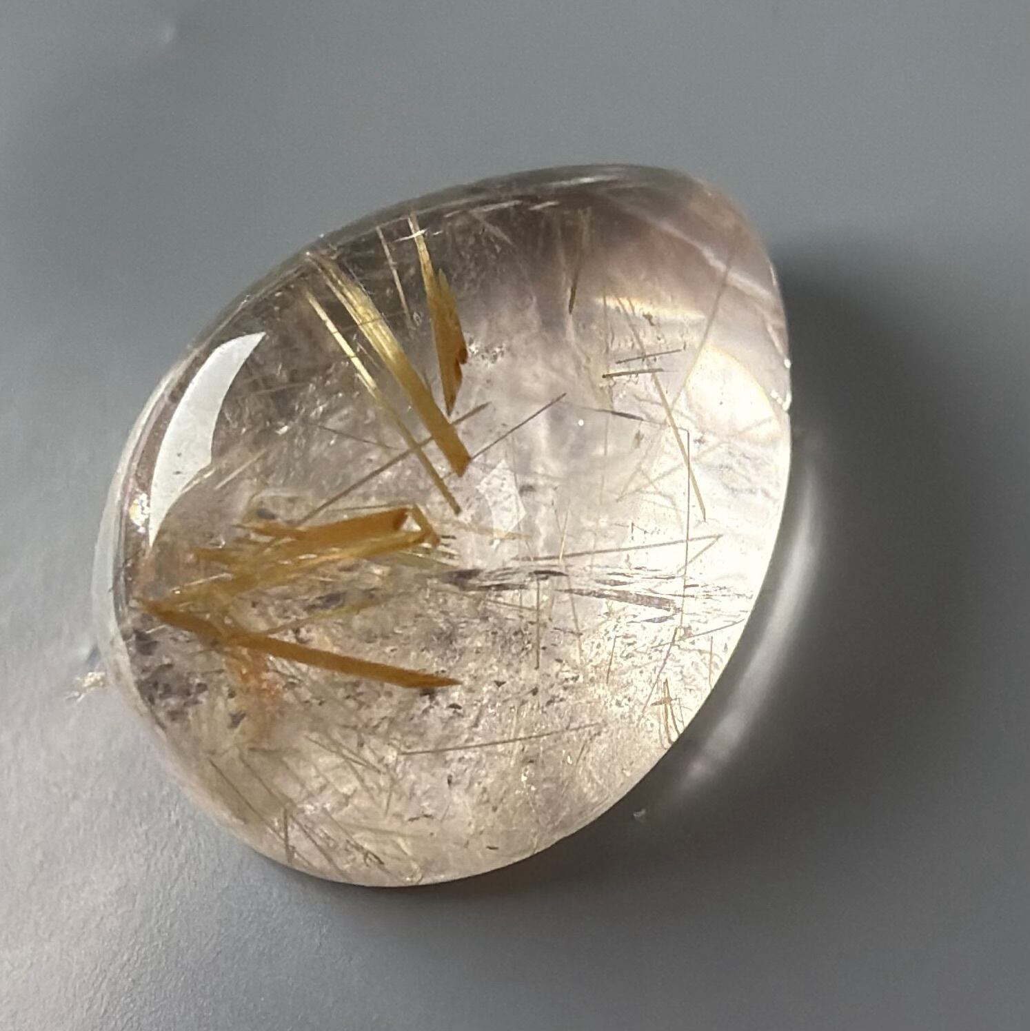 水晶部は抜群の透明感で細かな優しい針のルチルクォーツ ルース。