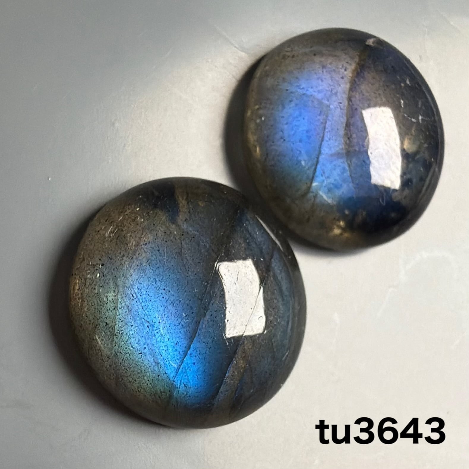 ロイヤルブルー ウォーターラブラドライト 15ミリラウンドペア【5Aグレード】 Tu3643