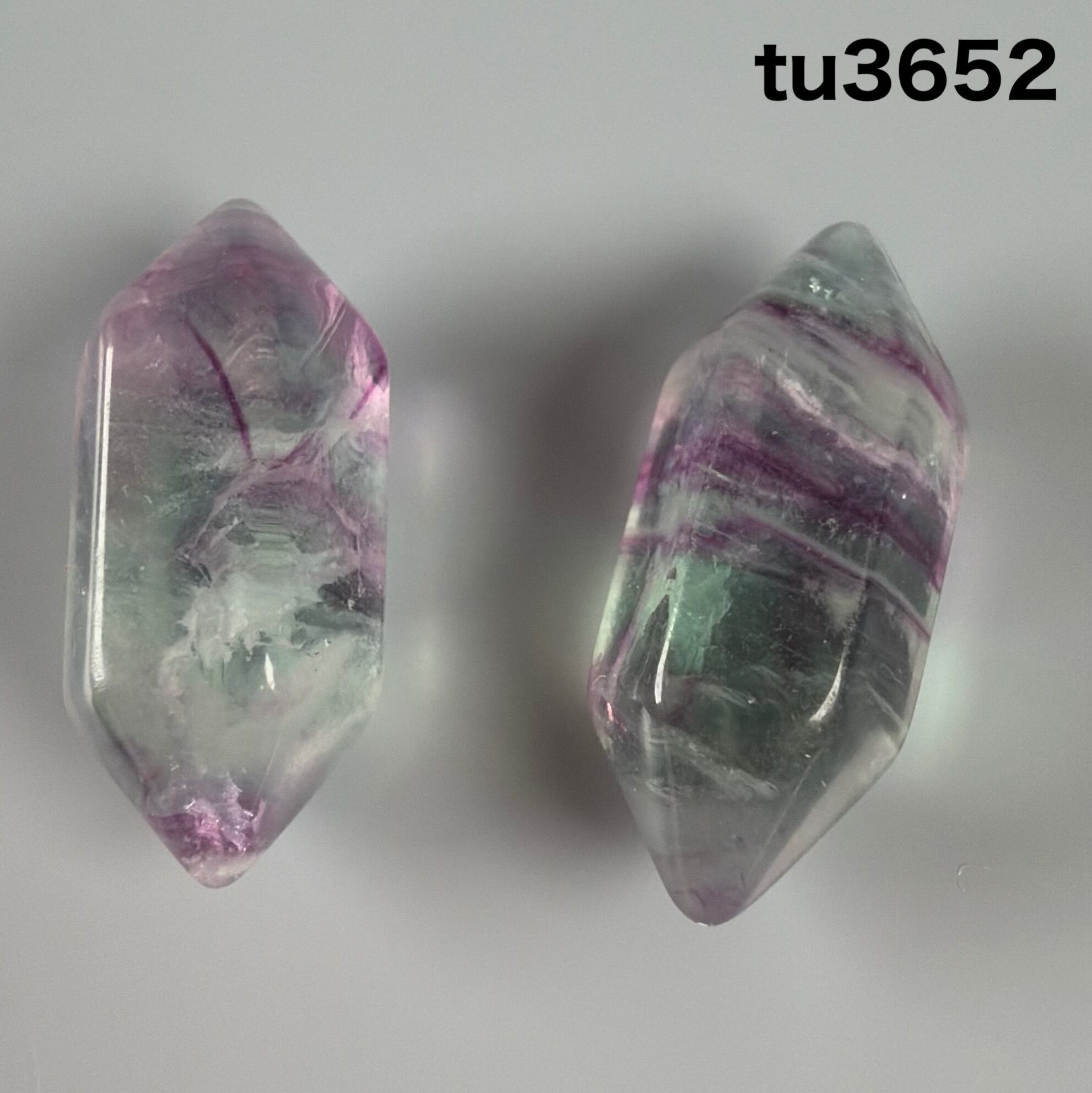 グラデーションが美しいフローライトのダブルポイント状にポリッシュ加工されたペア。