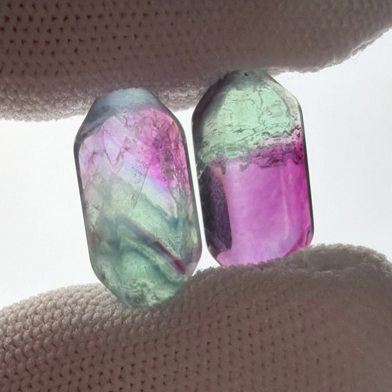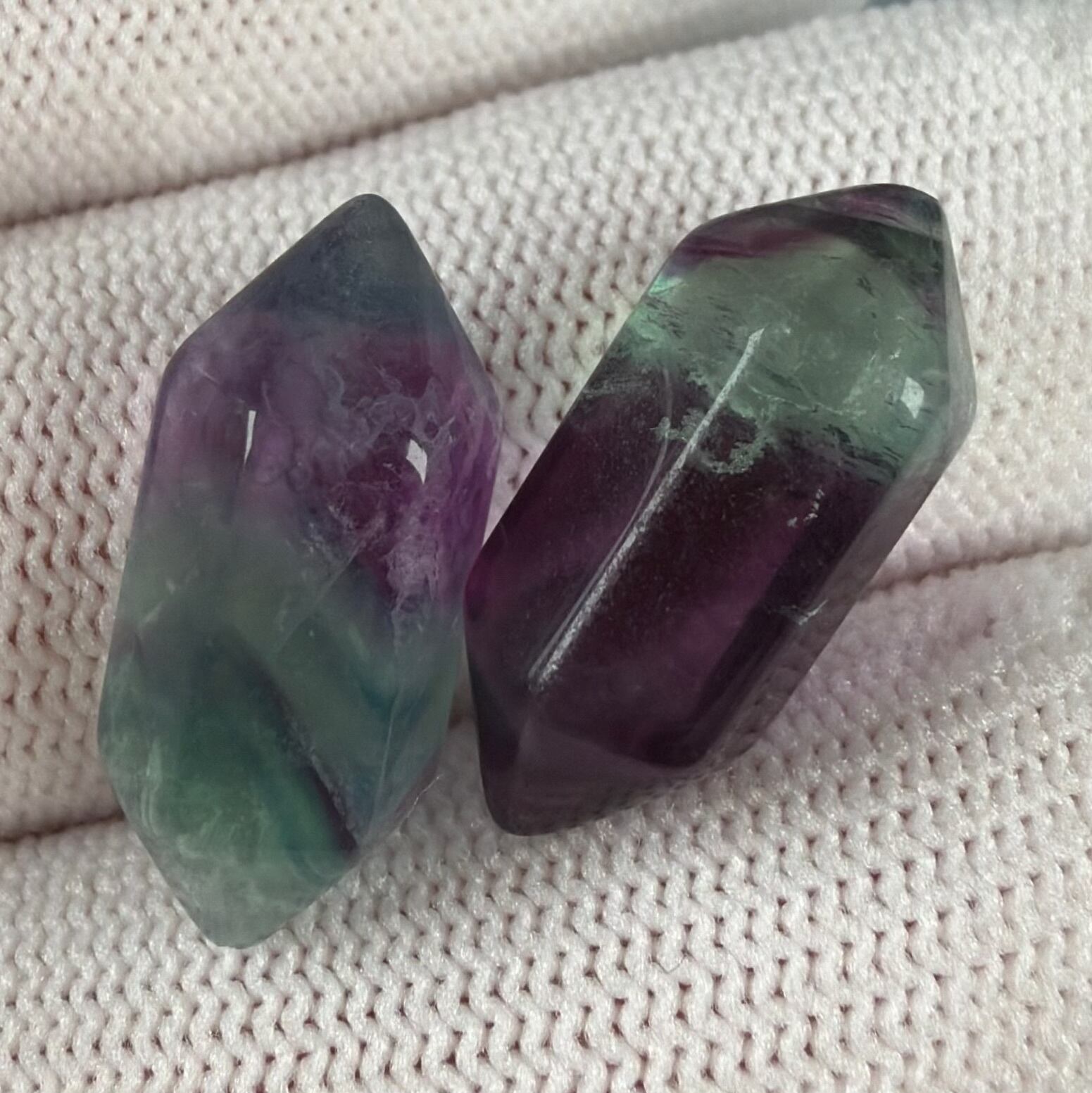 グラデーションが美しいフローライトのダブルポイント状にポリッシュ加工されたペア。