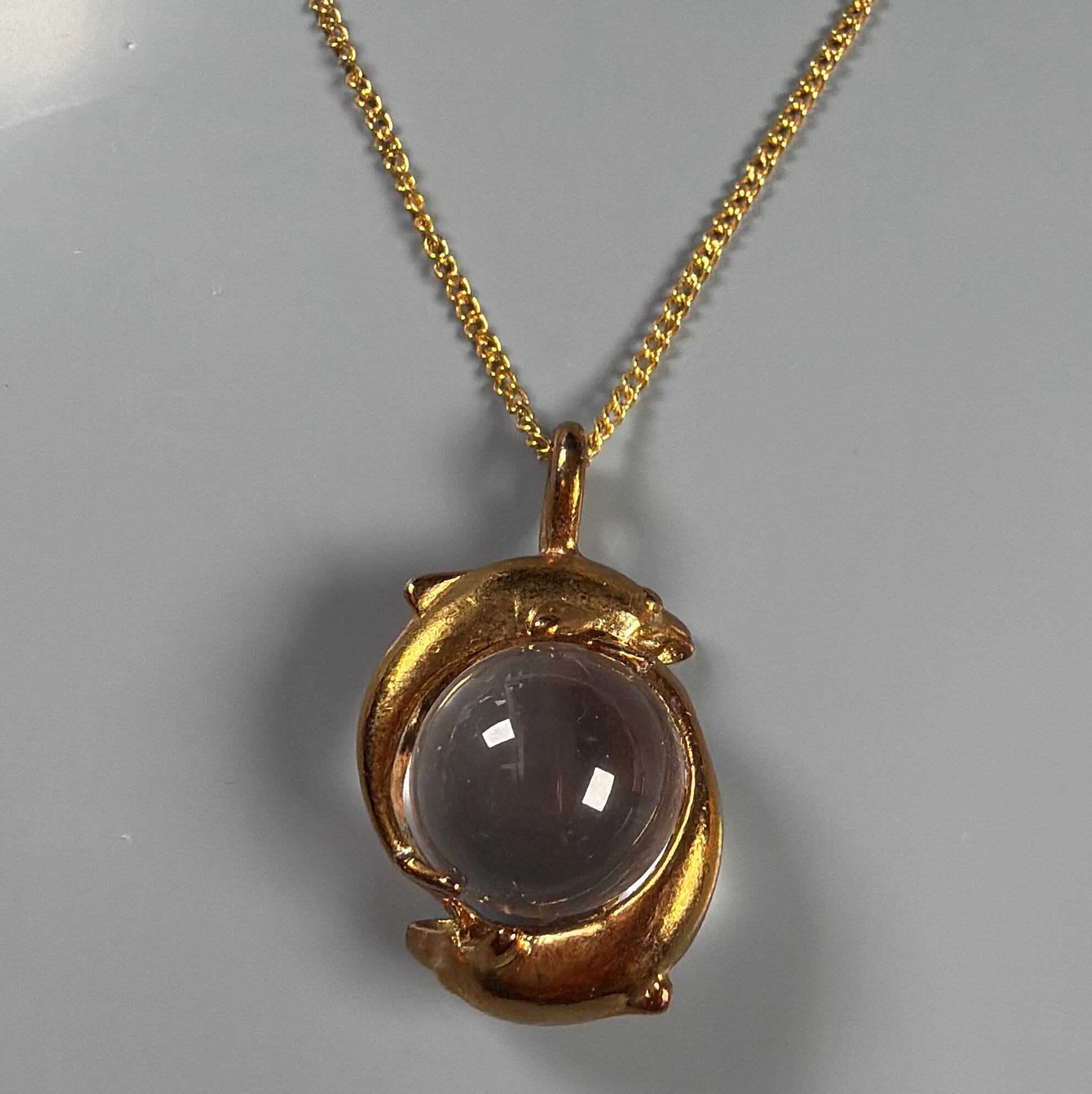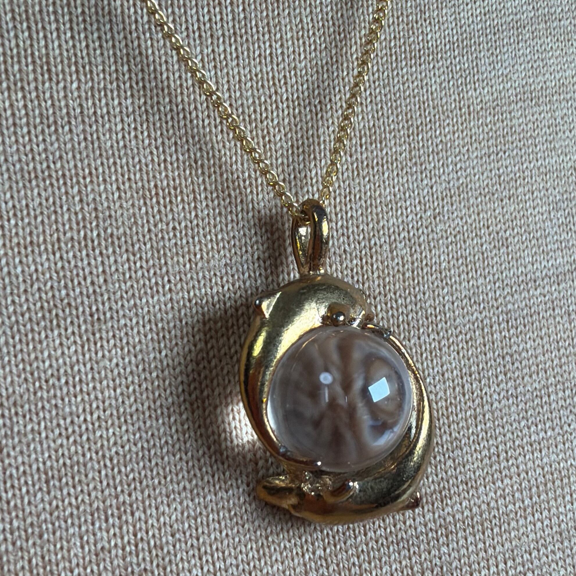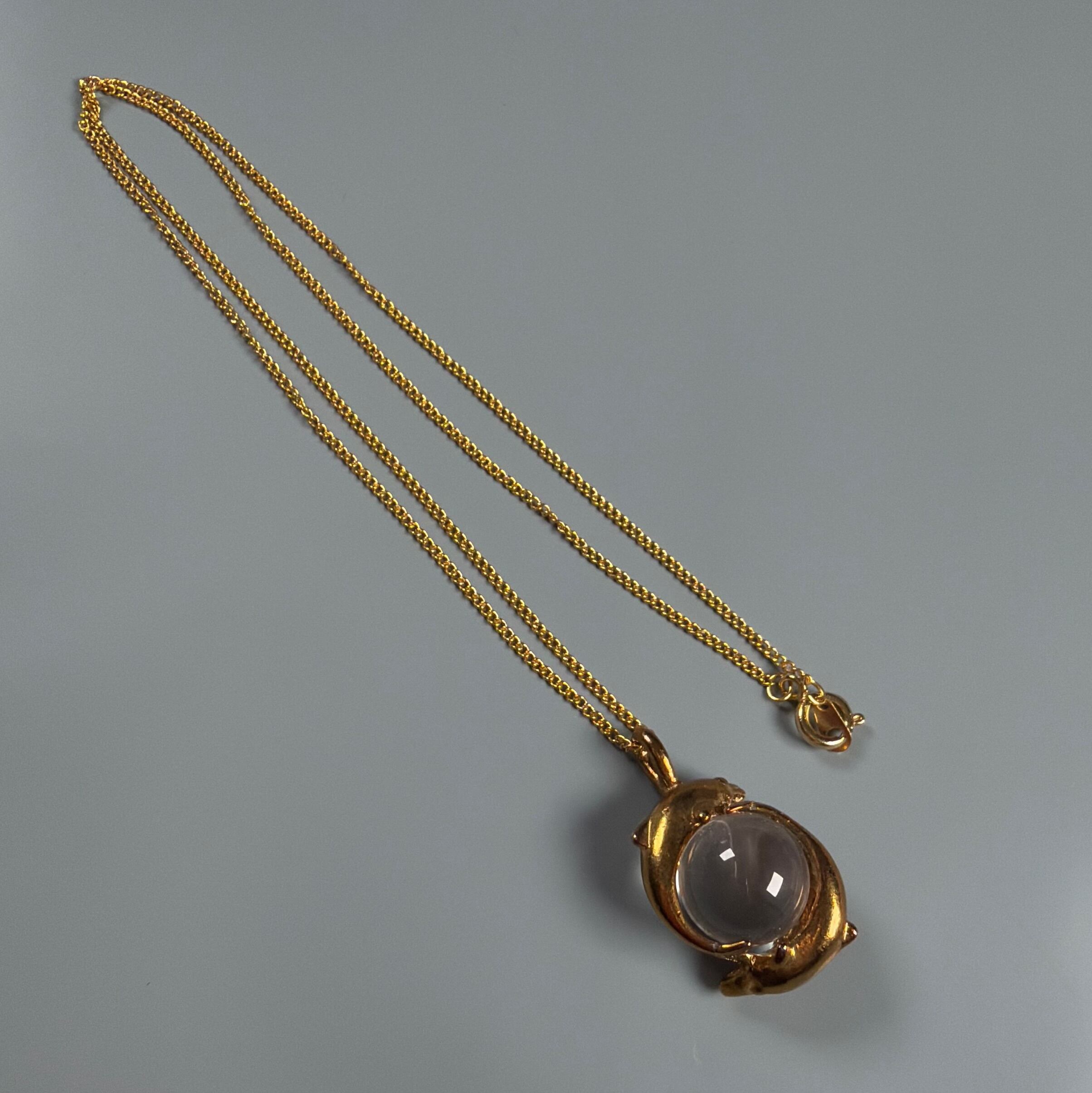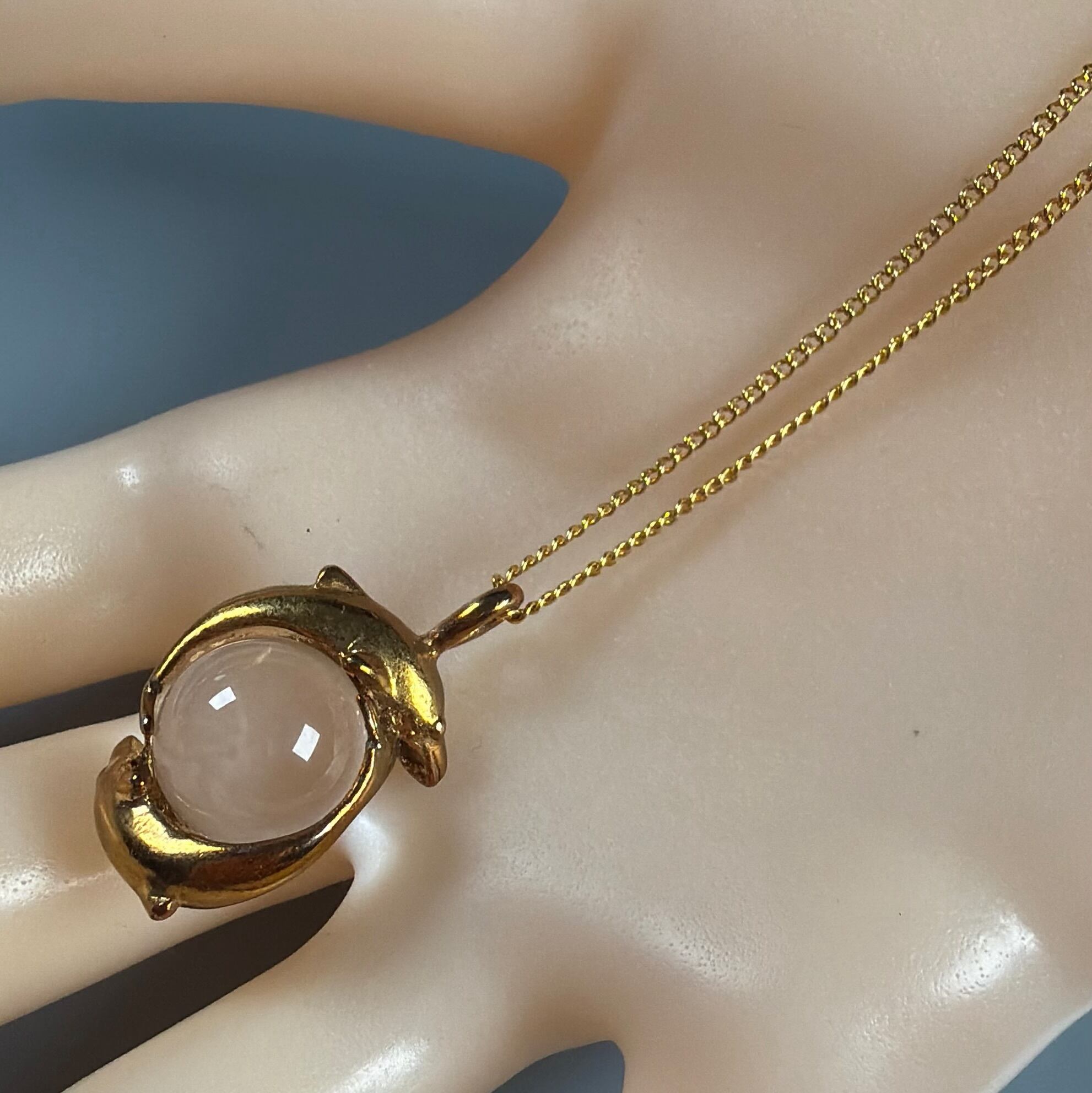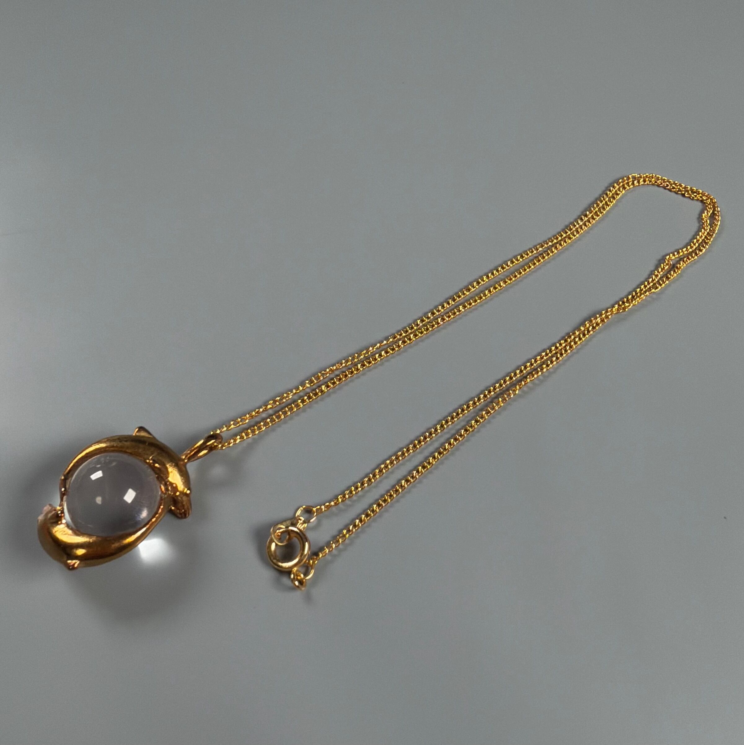 水晶をイルカが囲んだトップのネックレス
