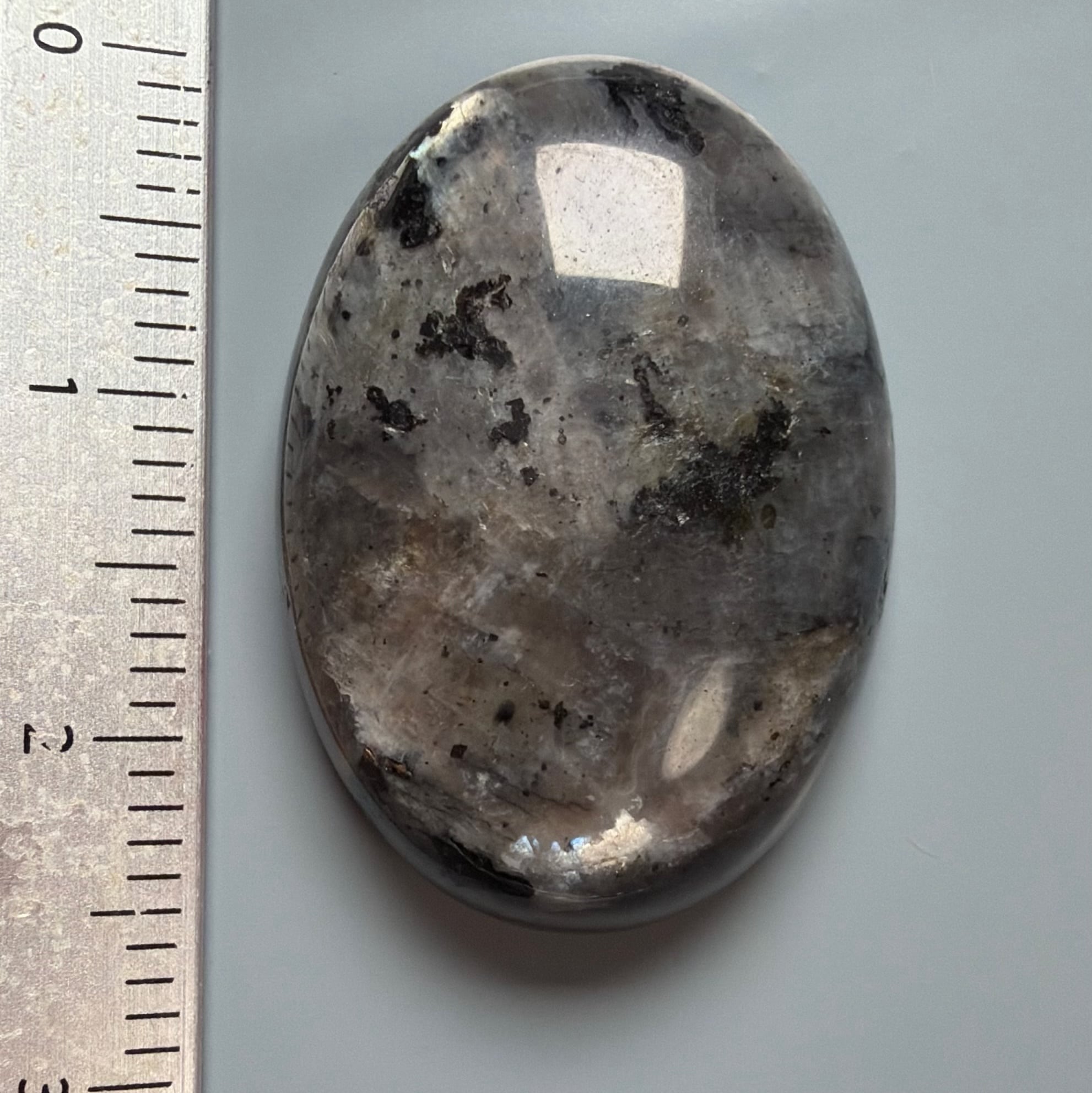 長石類に属する黒っぽい天然石。