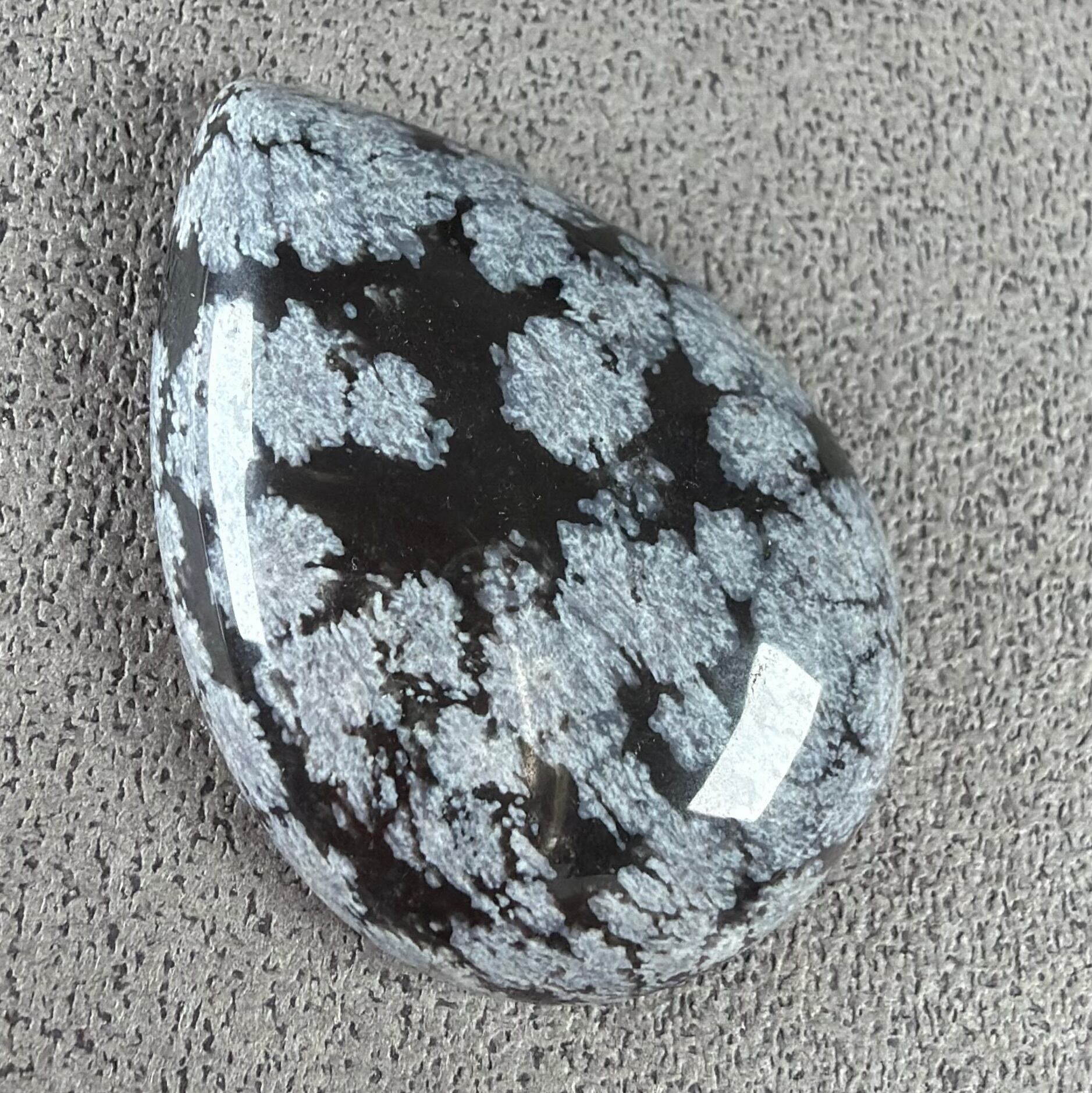 スノーフレークオブシディアン 34ミリ ティアドロップ型ルース Tu3815
