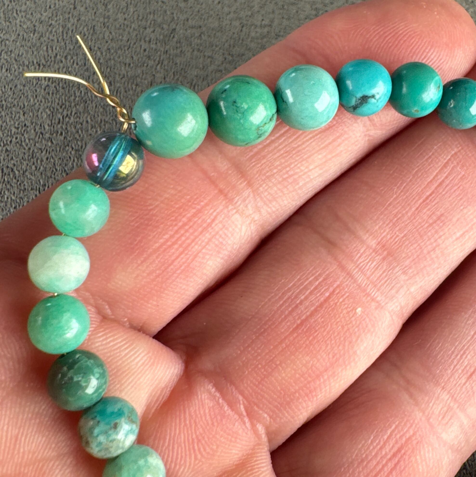 ターコイズ8ミリ3個、7ミリ1個、6ミリ16個、