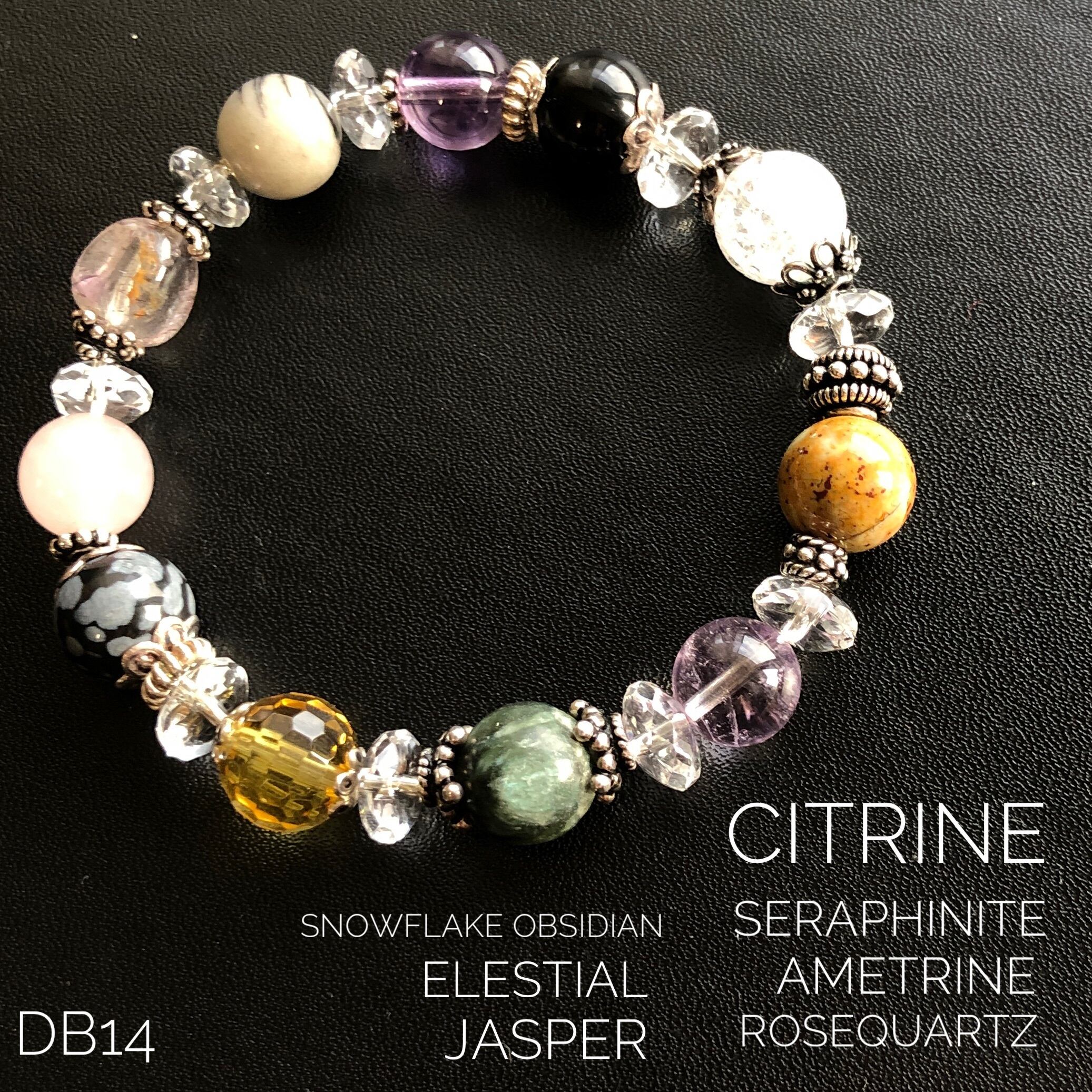 セラフィナイト シトリン アメトリン スパイダーウェブジャスパー オニキス パワーストーンブレスレット(DB14)