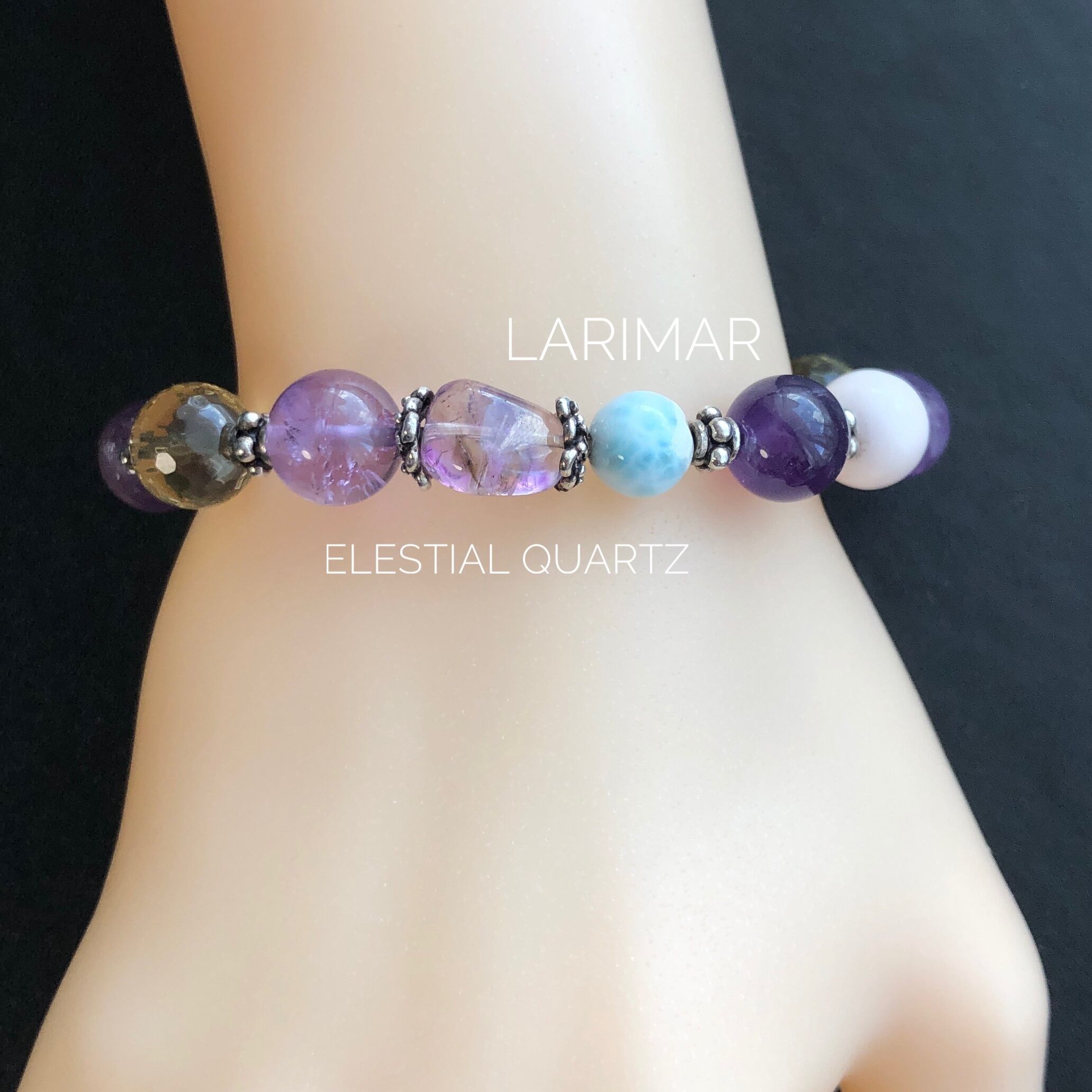 ムーンストーン ラリマー ピンクカルサイト アメジスト シトリン ブレスレット(DB36)