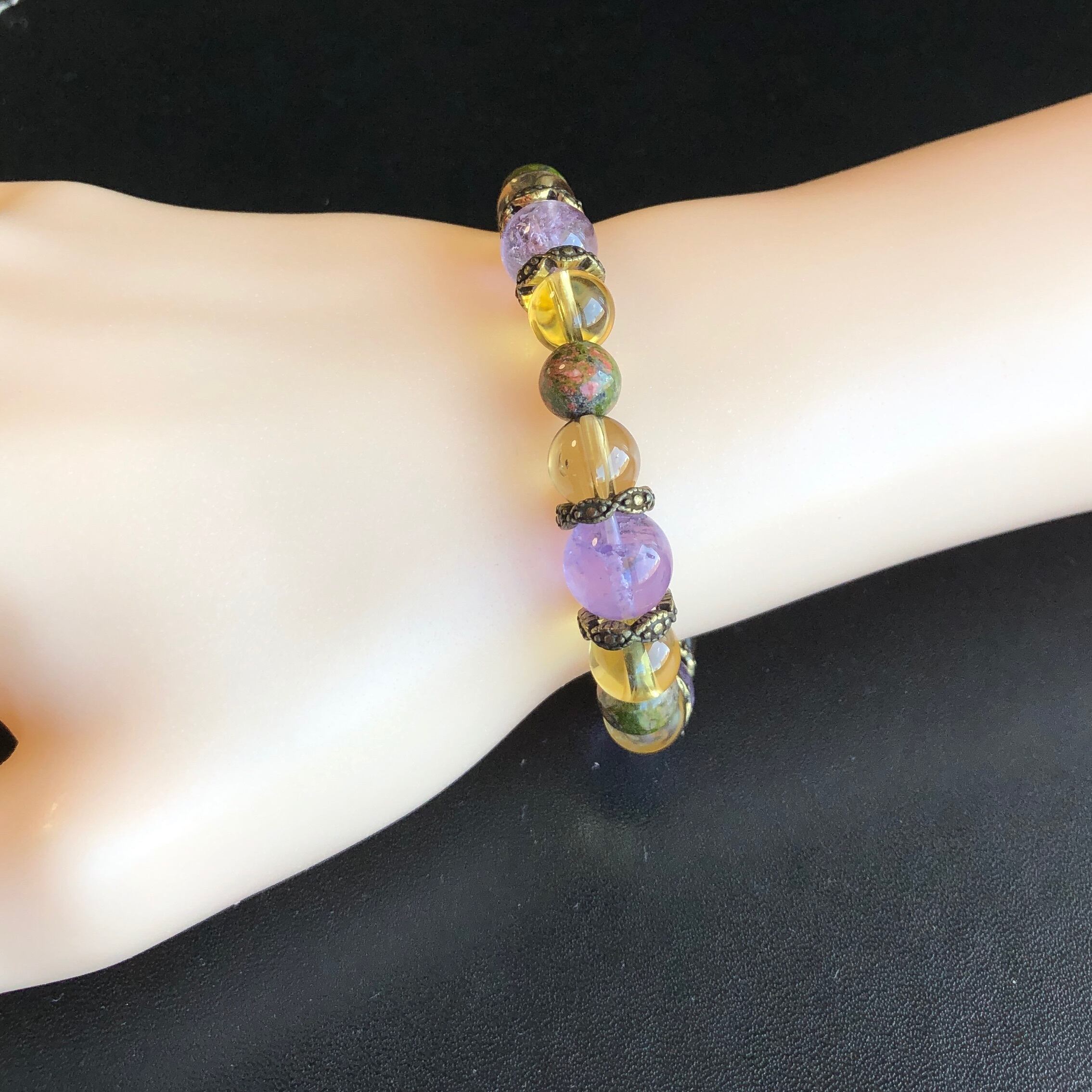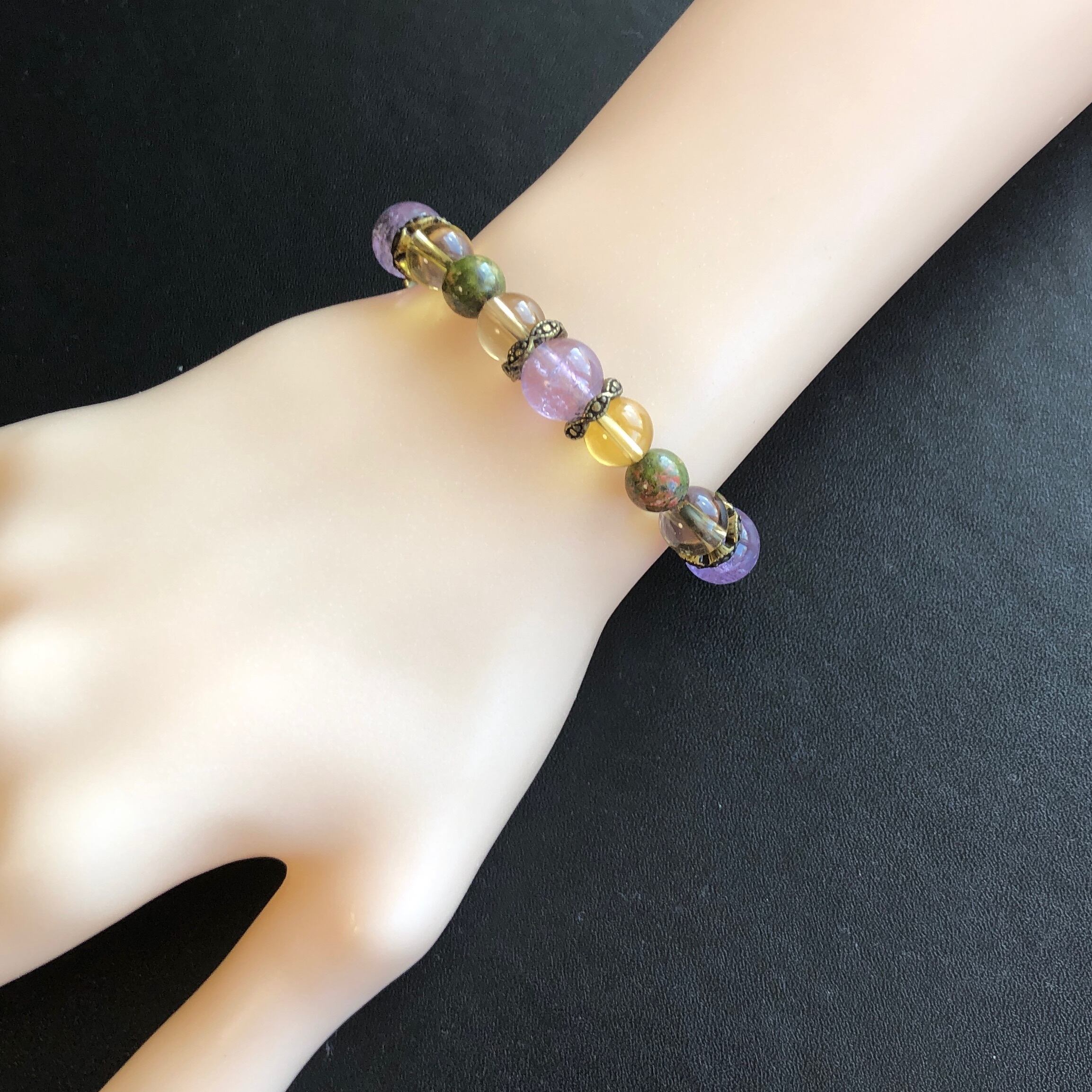 ラベンダーアメジスト ユナカイト シトリン ブレスレット(DB48)