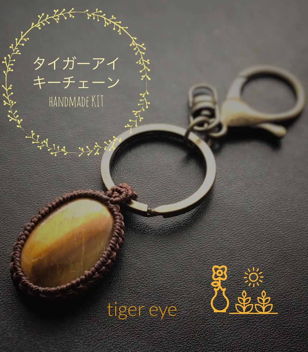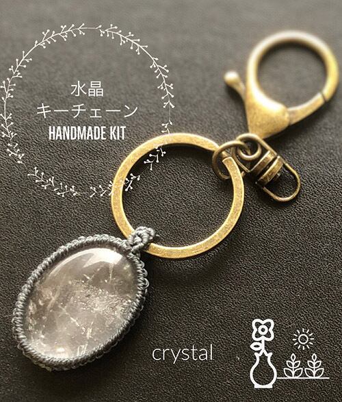 このキットは、材料の天然石、マクラメ紐、アンティーク調キーチェーンパーツ、