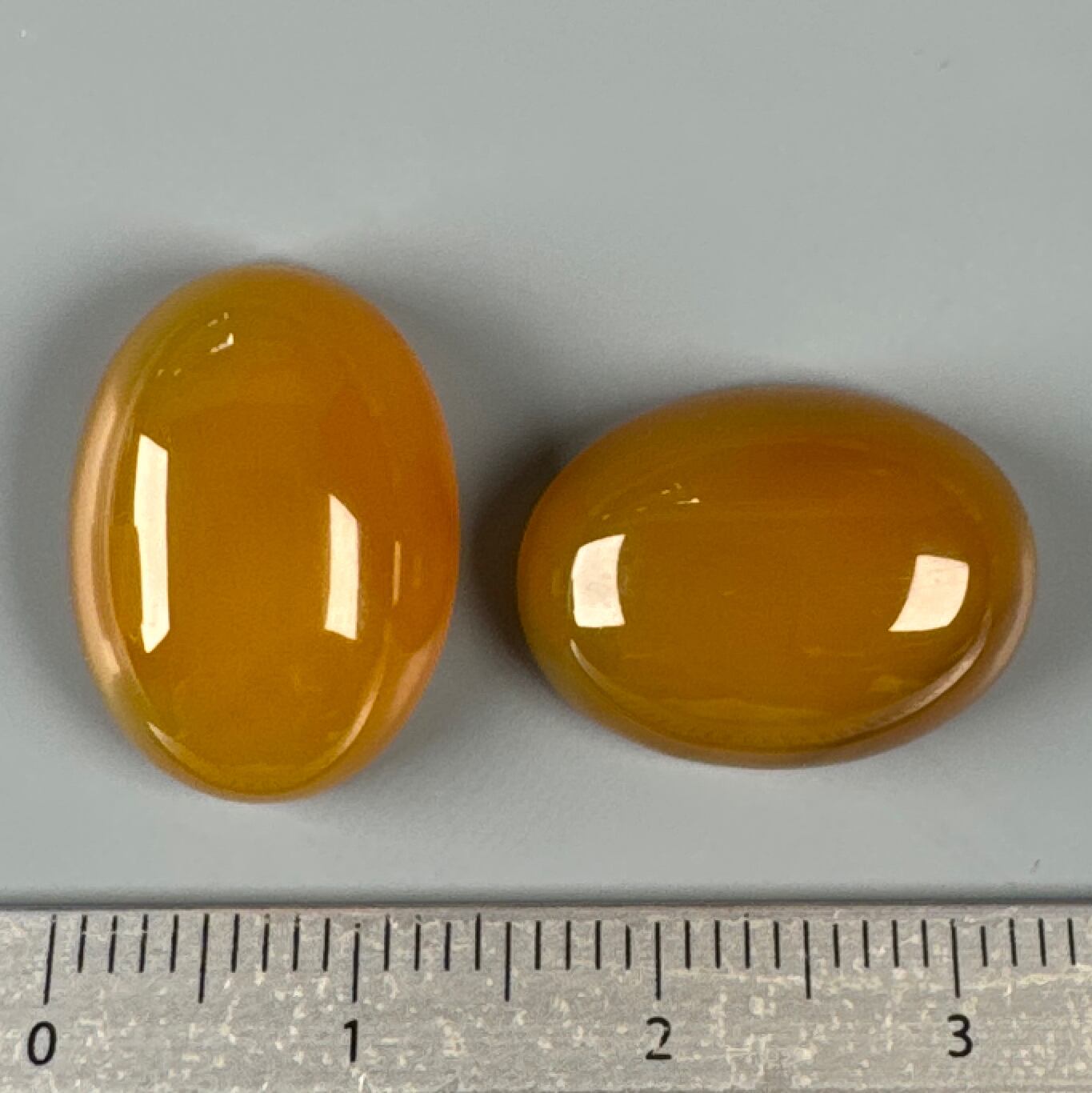 天然石ルース:イエローとブラウンの中間のような色合いのカルセドニー2個パック。