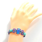青くトリートメントした水晶をメインにマクラメブレスを仕上げました。