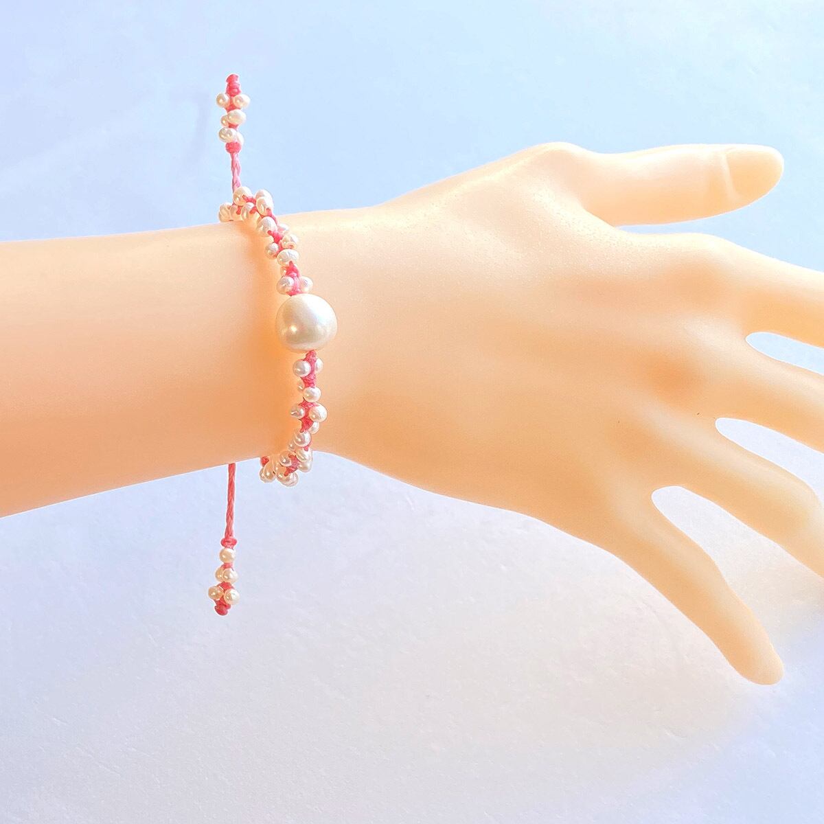 フレッシュウォーターパールのマクラメブレスレット ma103
