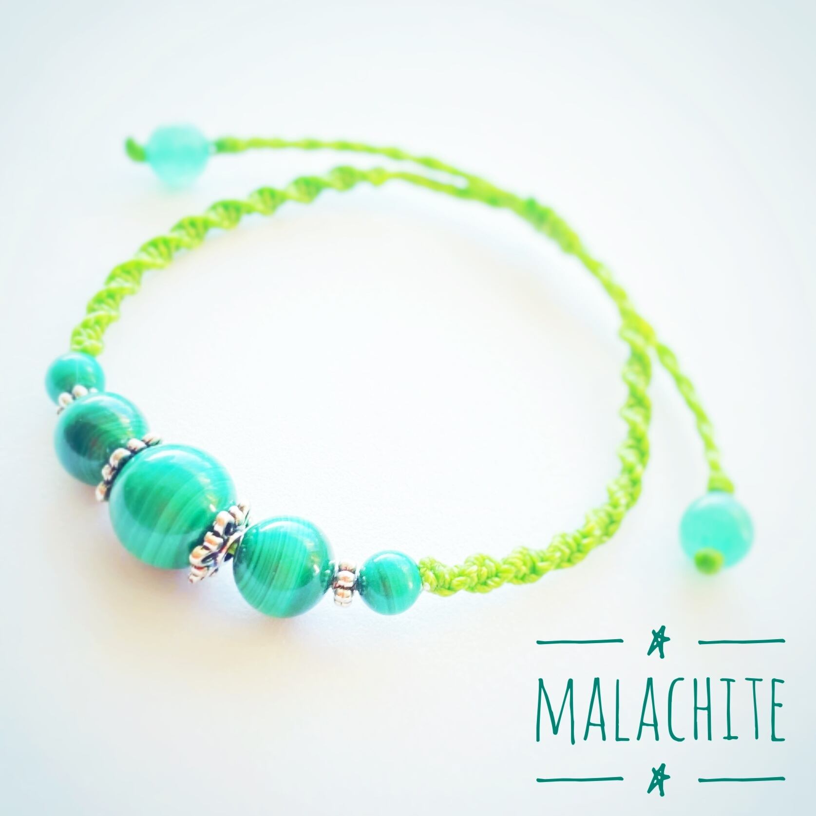 マラカイトのマクラメブレスレットです。