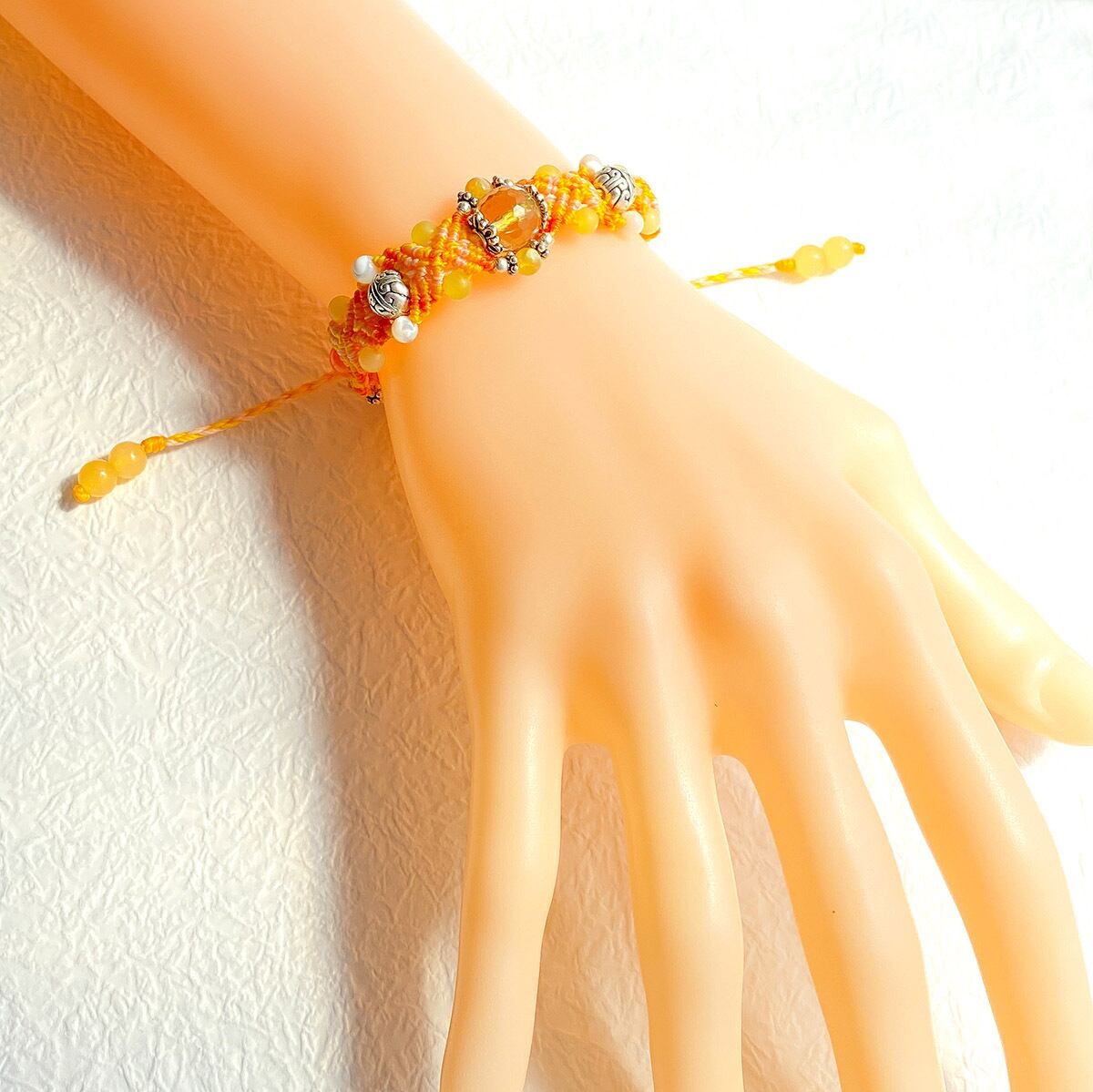 心を込めたマクラメジュエリーブレスレットを編み上げました。