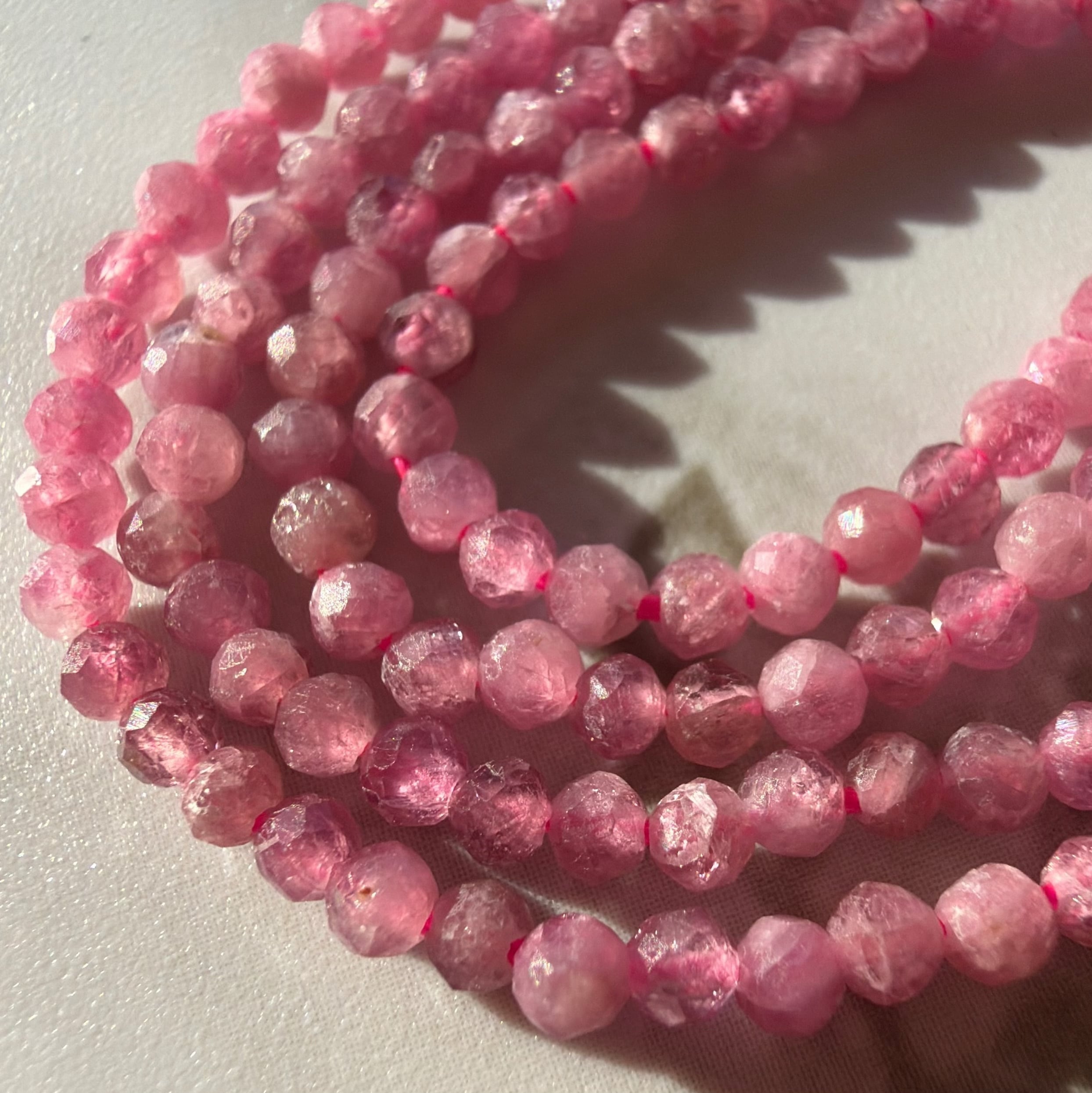 人気のピンクトルマリンを、2.5ミリの小粒カットビーズに仕立てました。