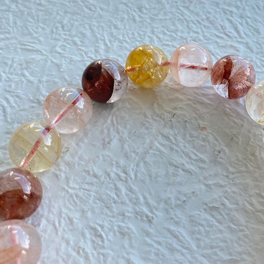 赤やオレンジの個性的な色合いを見せてくれる水晶です。