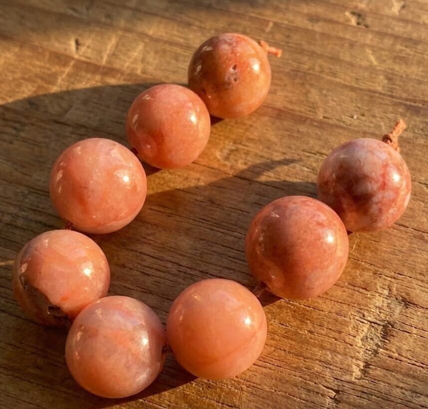 やわらかな朝焼けを、そのまま丸く閉じ込めたような石。