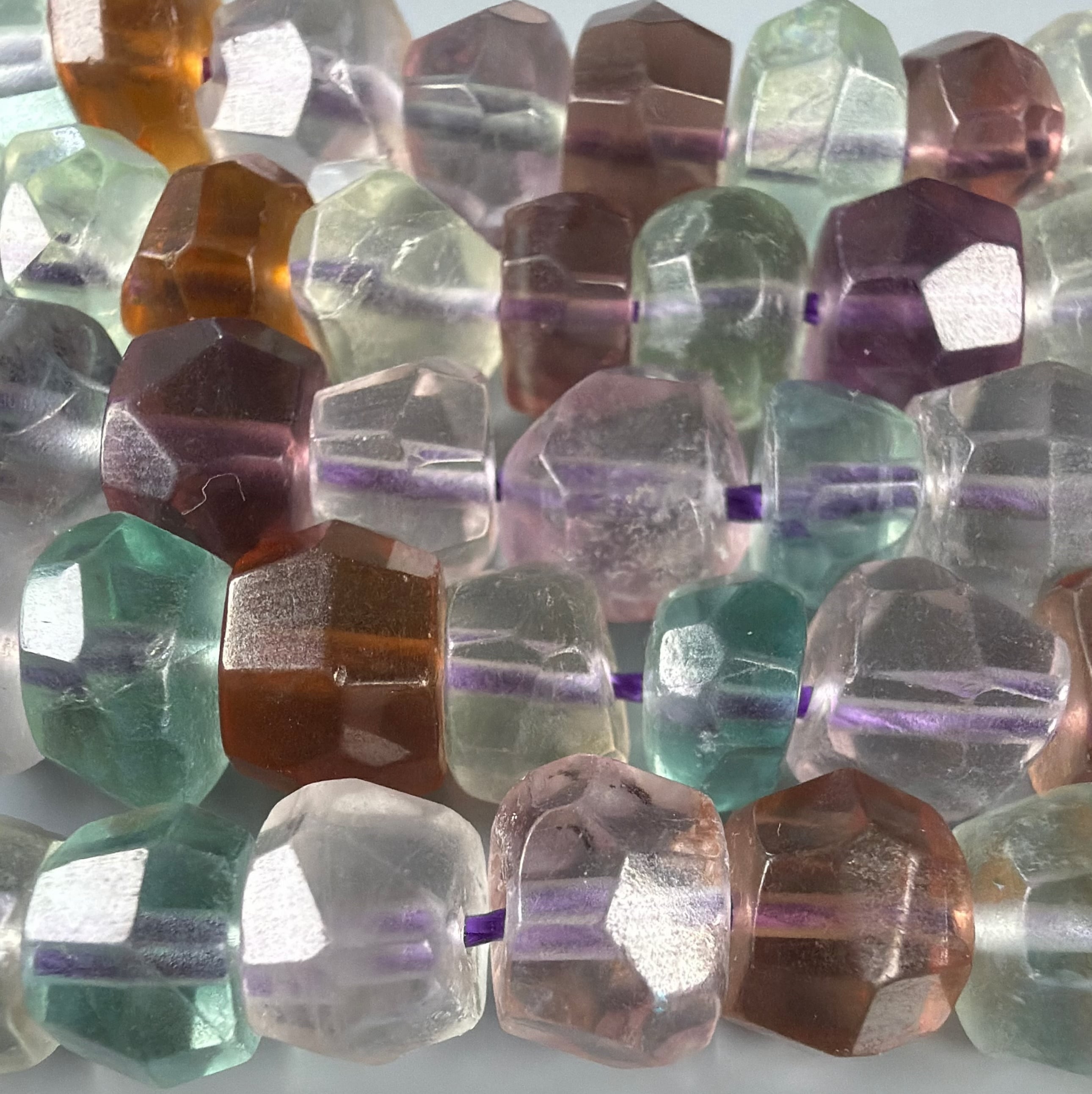 フローライトのロンデルビーズです。