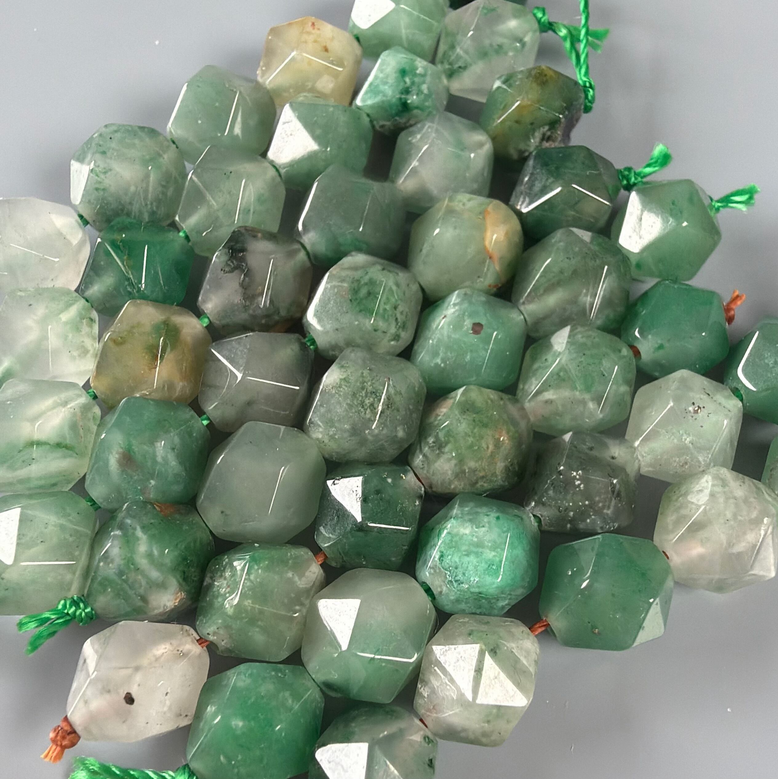 少し珍しいモスアゲートのスターカットビーズです。