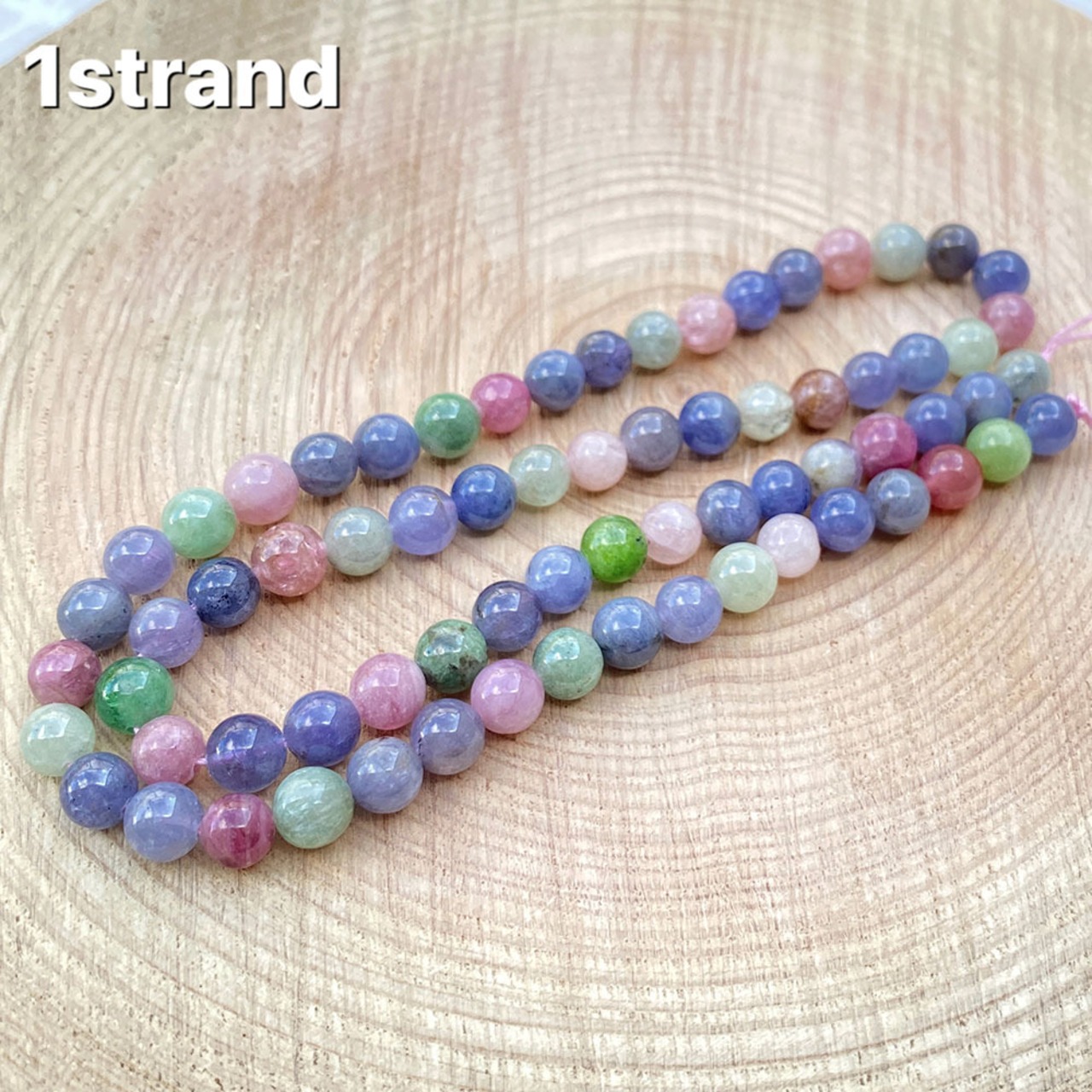質の良いタンザナイトとピンクトルマリン、エメラルドの6ミリビーズです。