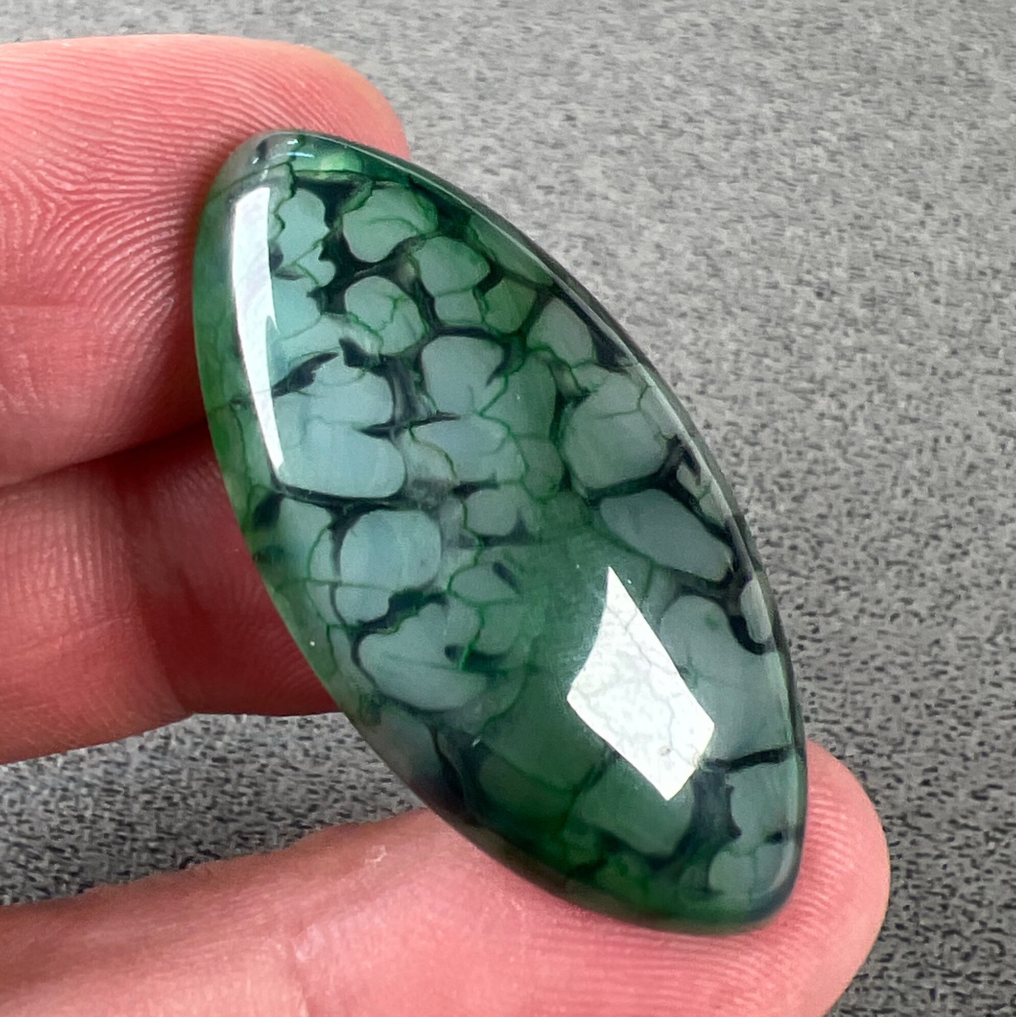 ドラゴンアゲートの染め グリーンカラー アーモンド型のルースです。