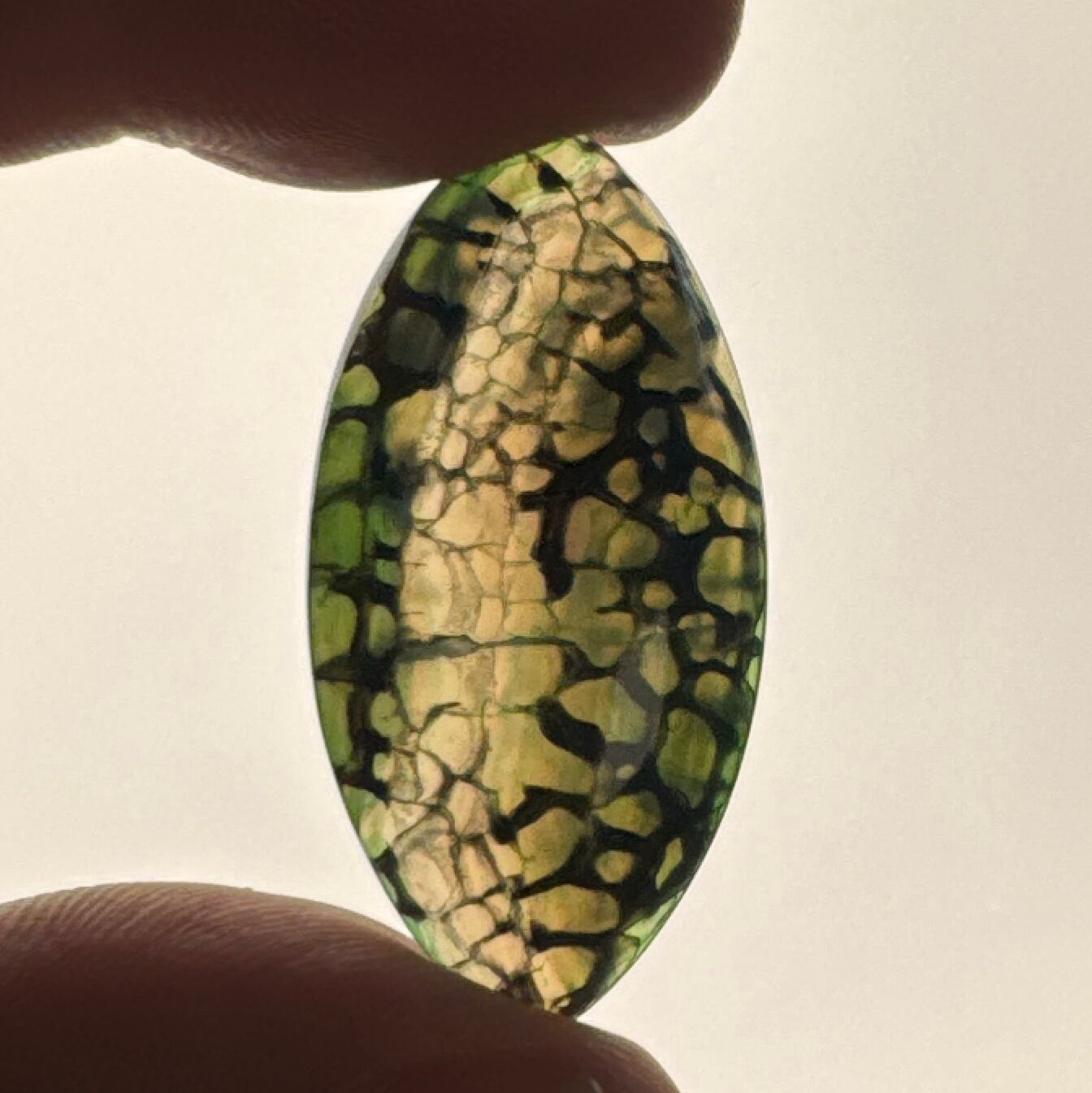 ドラゴンアゲートの染め グリーンカラー アーモンド型のルースです。