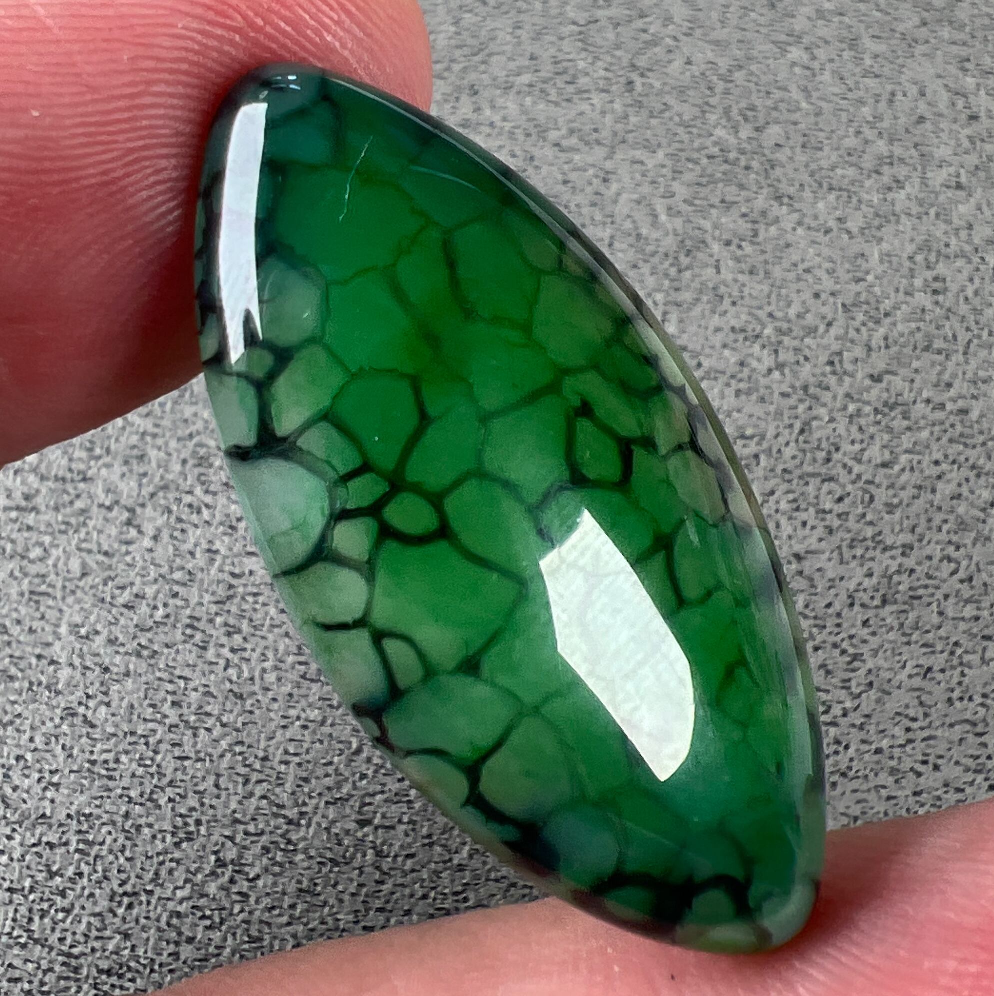 ドラゴンアゲートの染め グリーンカラー アーモンド型のルースです。