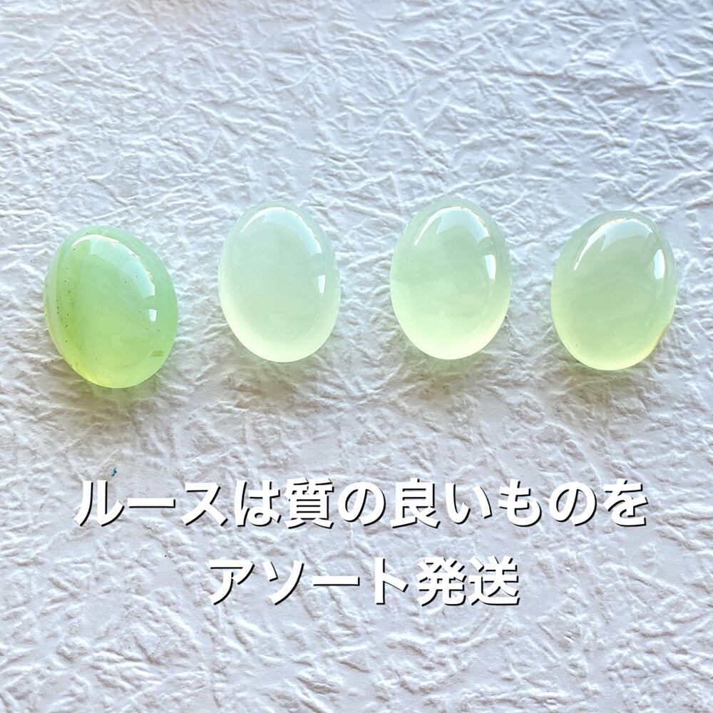 優しいパステルカラーのマスカットカルセドニールースのサイズ:約25ミリ×約18ミリ。