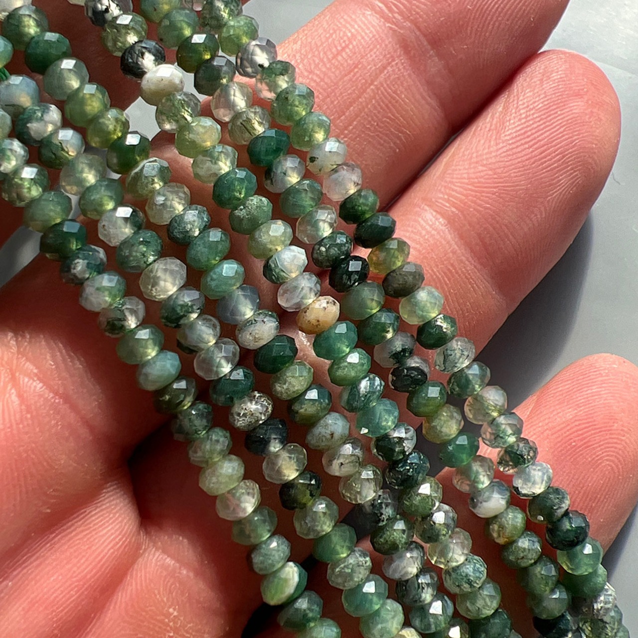 高品質 モスアゲートロンデルカット 4×2ミリ ビーズ 連 sb2007