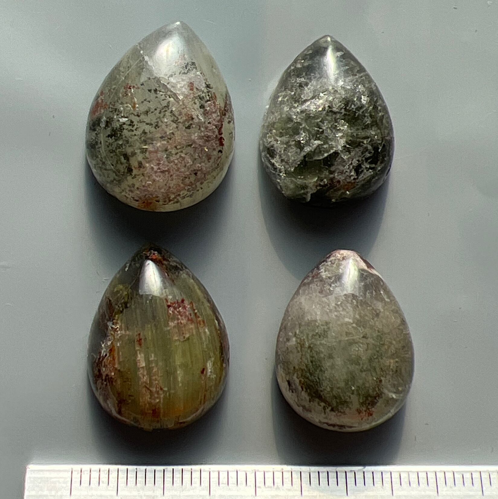 曇ったガーデンクォーツ ティアドロップ型ルース 4個セット nl4191