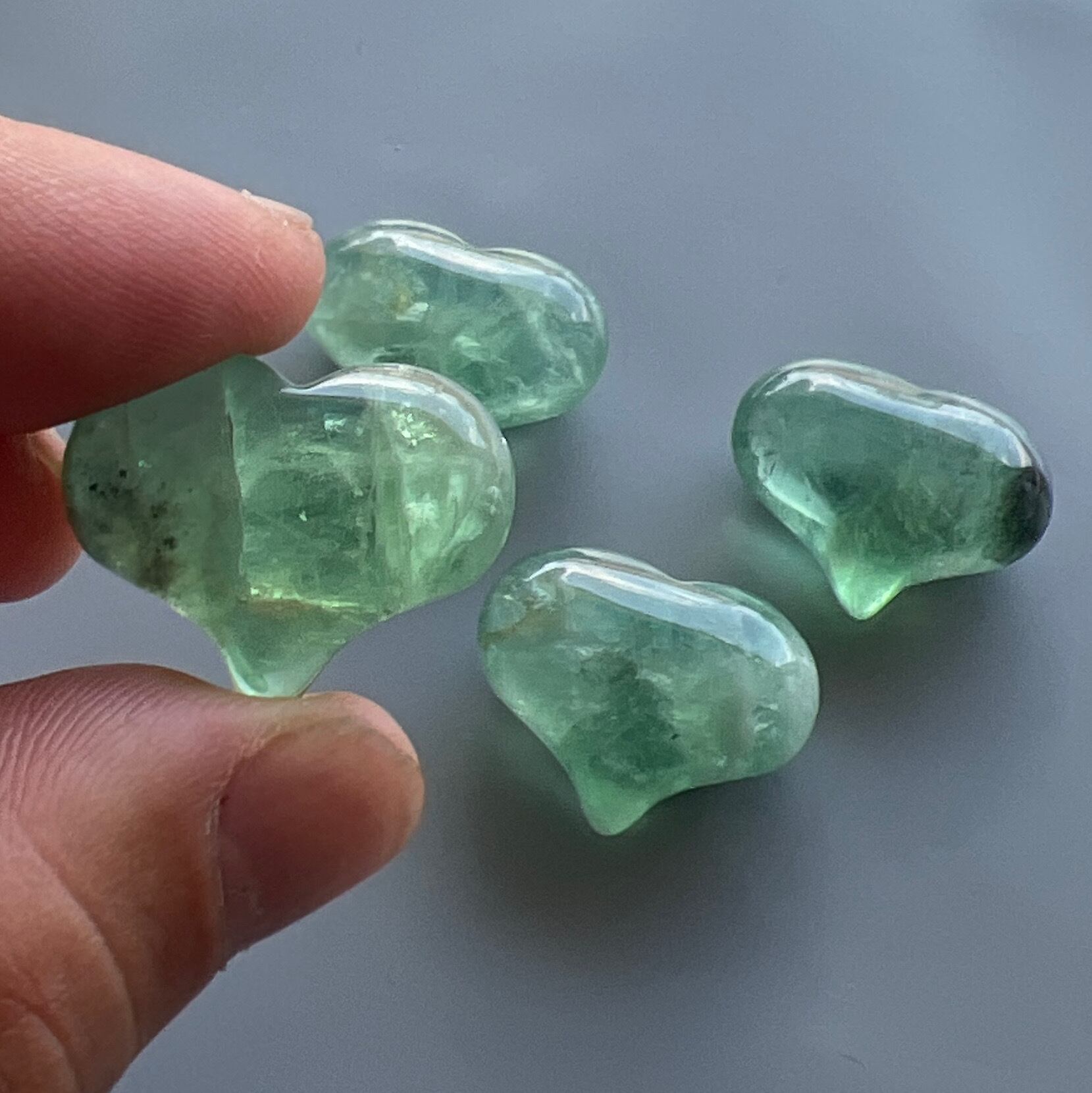 ぷっくりぷくぷくハート型グリーンフローライト 4個セット tg597