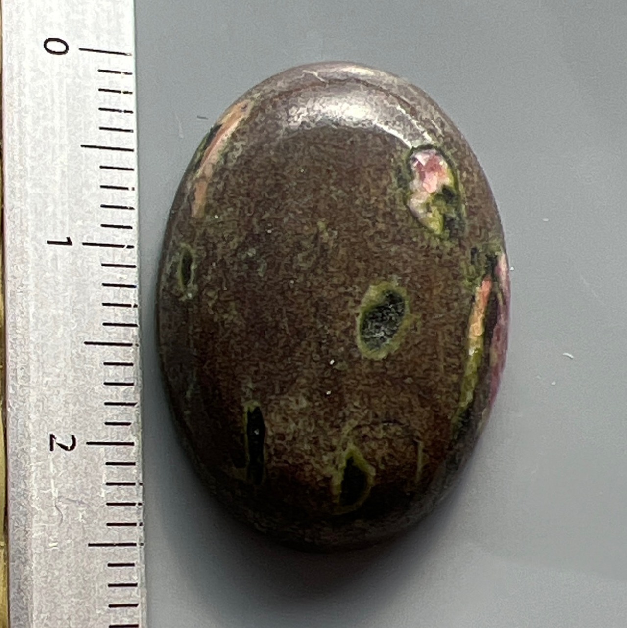 茶色におだやかなピンクのスポットが面白いジャスパーのルースです。