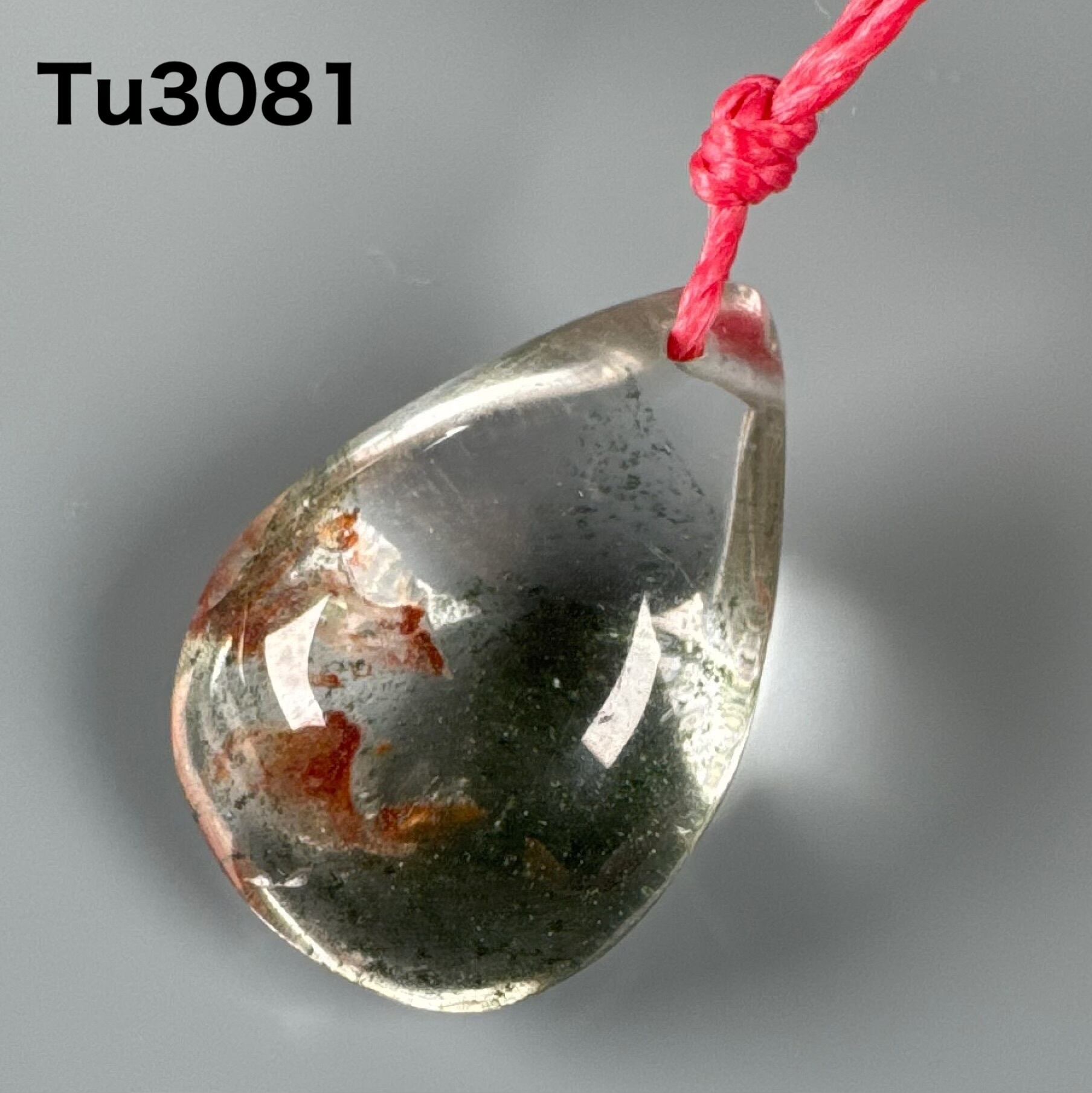 透明度抜群 ガーデンクォーツ 穴あきティアドロップ型 タンブル Tu3081