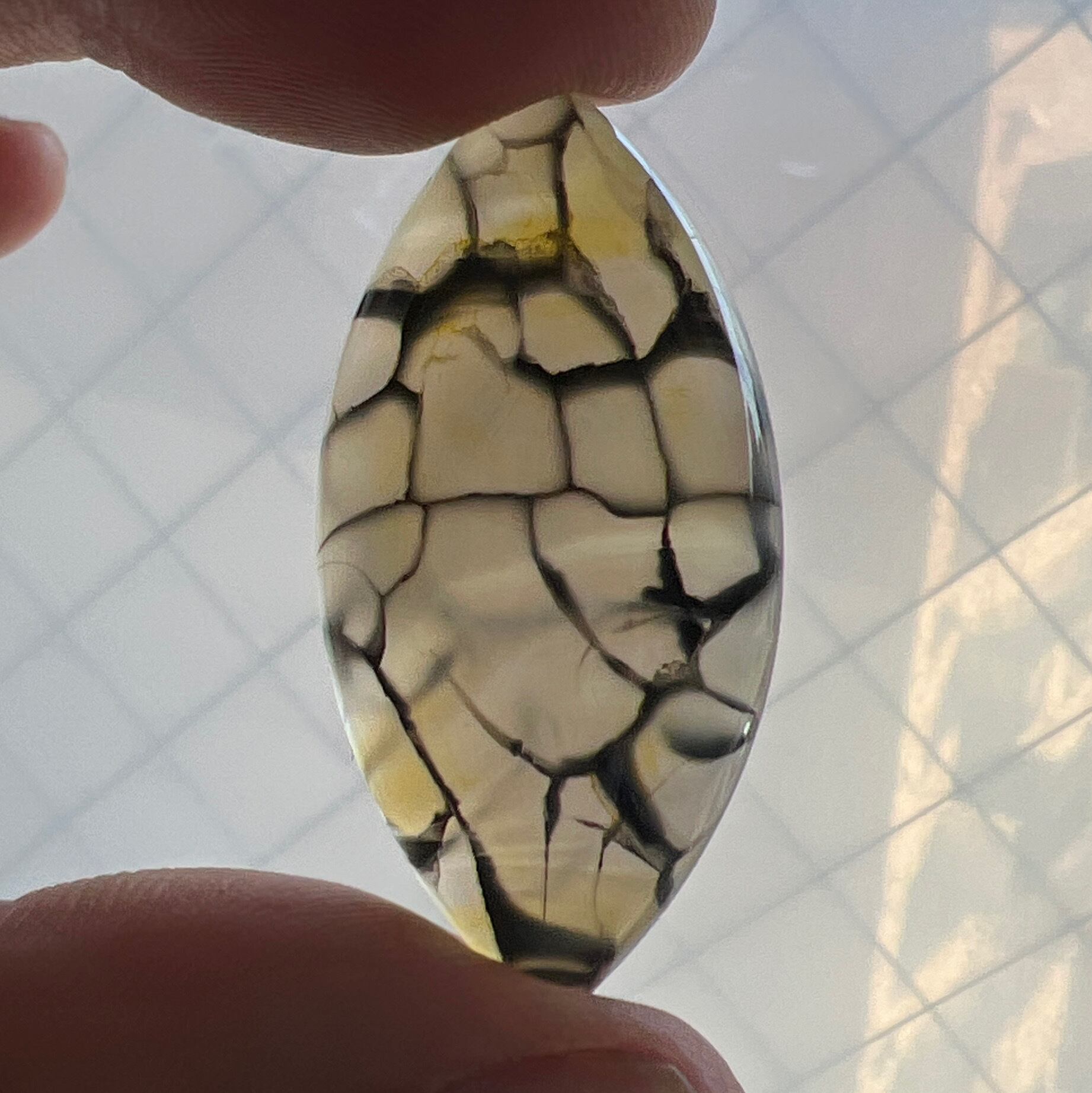 ドラゴンアゲートの染め イエローカラー アーモンド型のルースです。