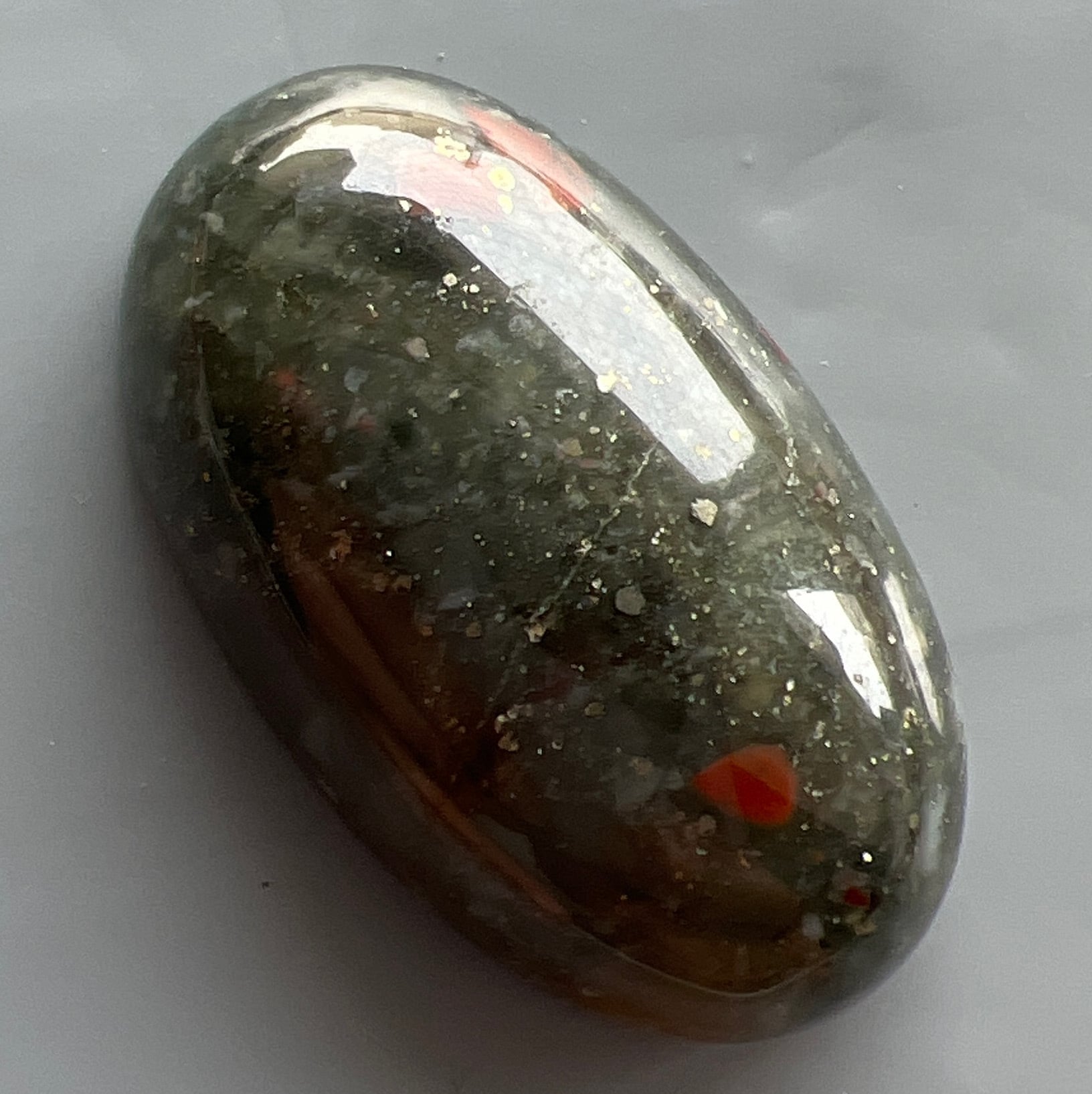 控えめに所々に赤が見られるブラッドストーンです。